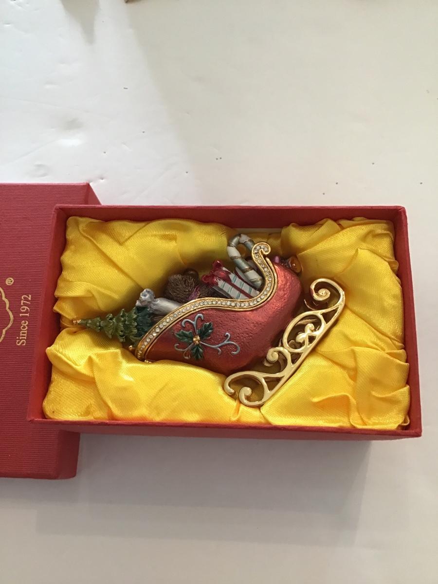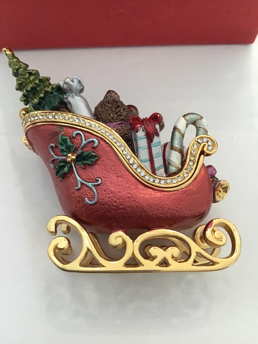 Beautiful, vintage, royal gem collection Christmas sleigh trinket box. Please see attached photos.
