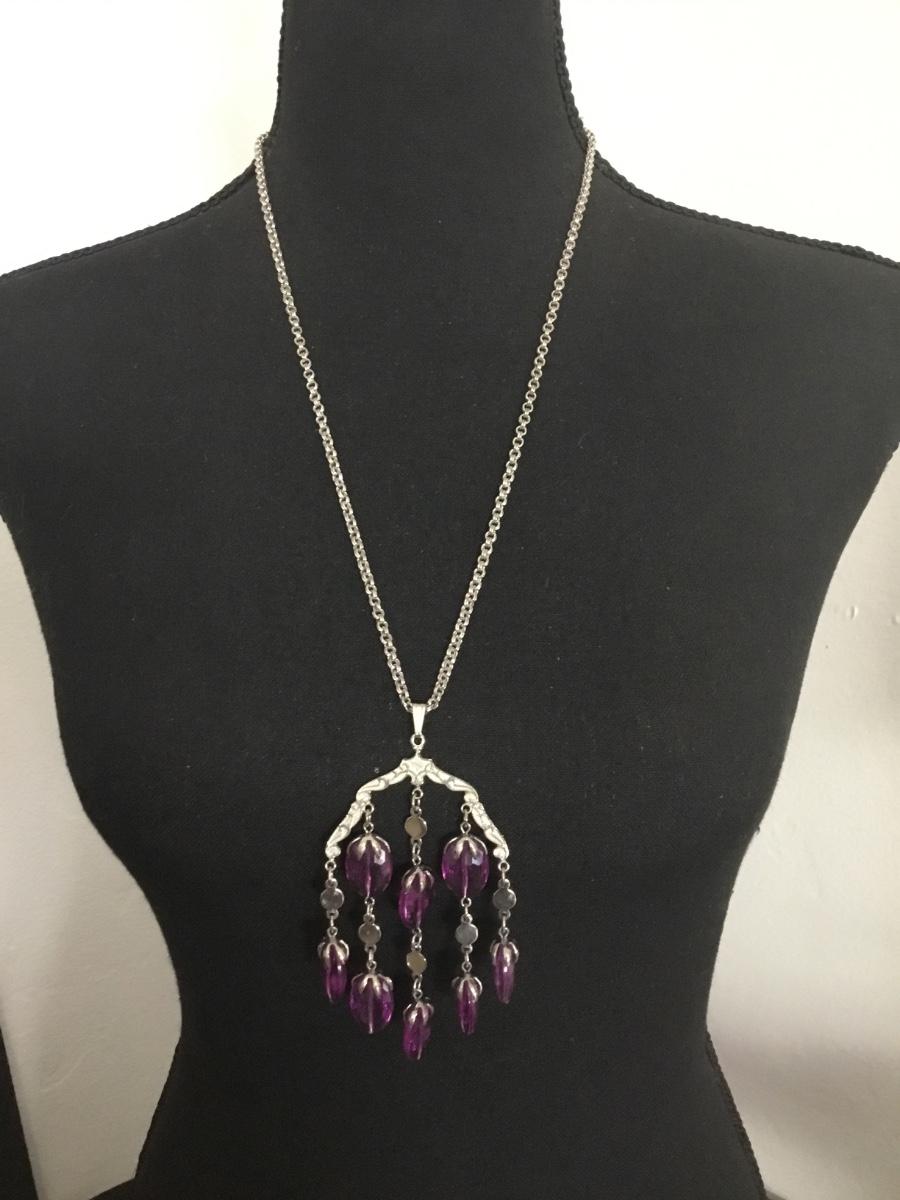 Beautiful vintage Sarah Coventry, Wisteria, 1973 purple gem statement necklace excellent condition