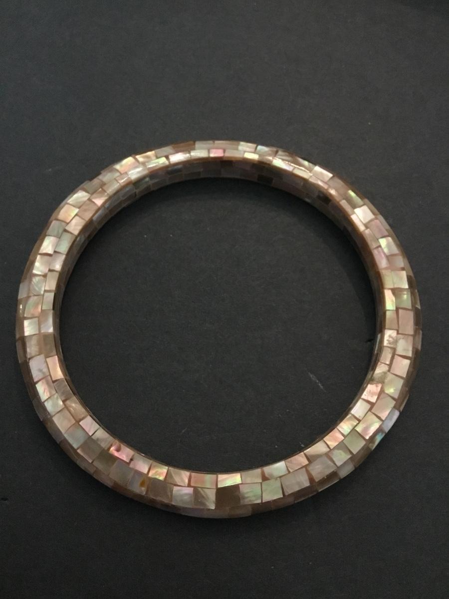 Beautiful vintage Shell inlay Mosaic bangle bracelet
