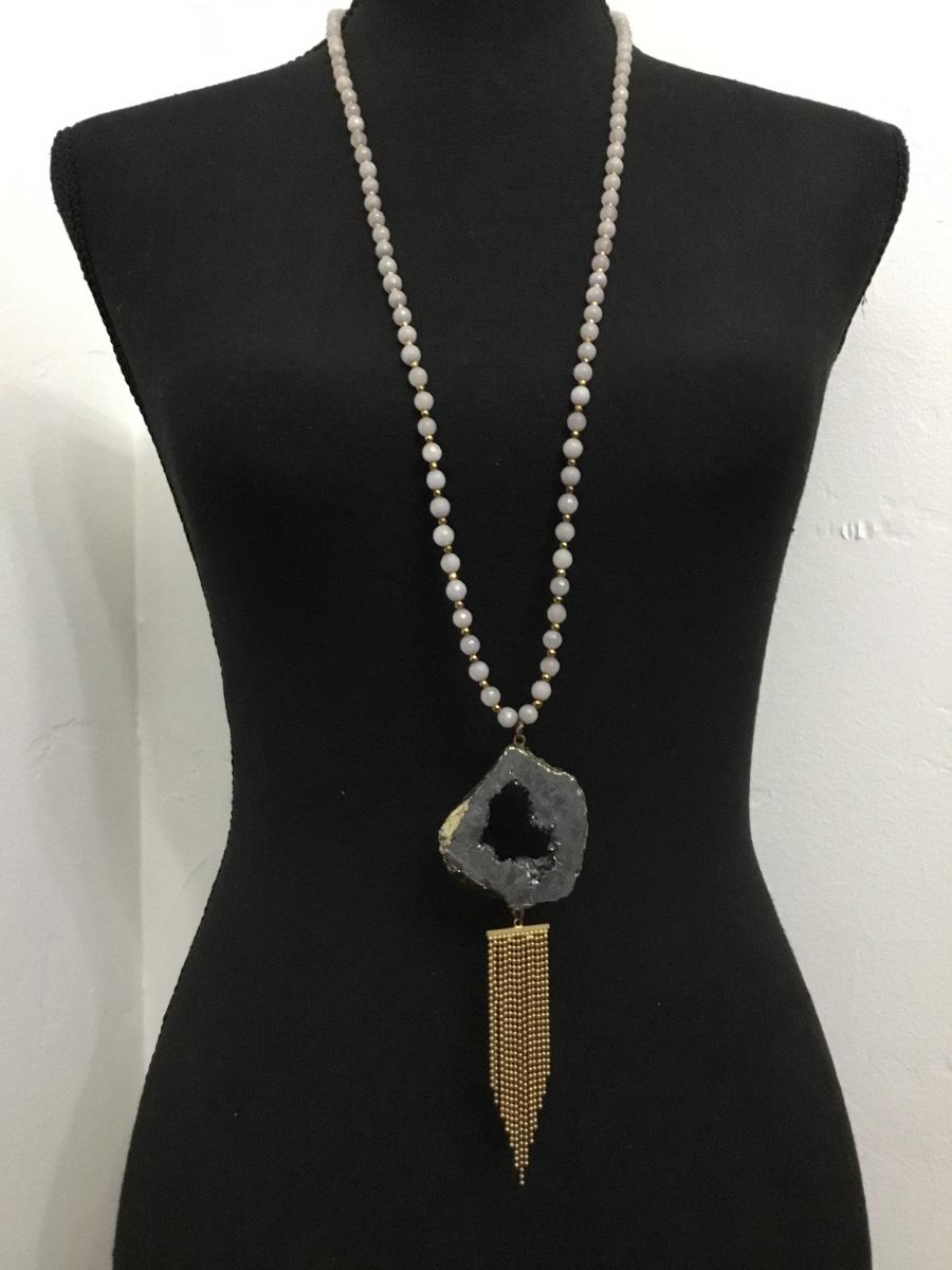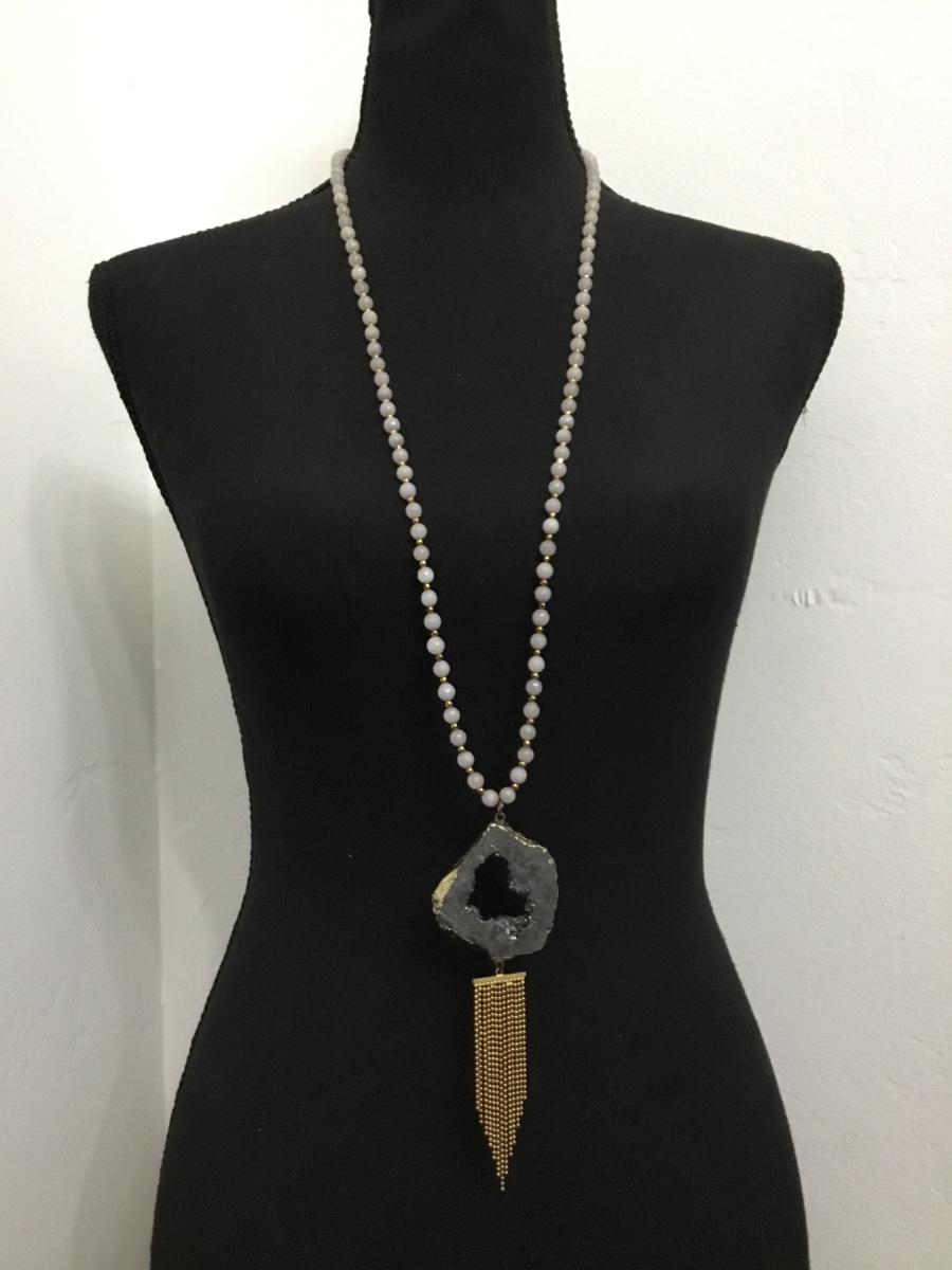 Beautiful vintage signed stone bead, necklace and Drizzy agate, sliced pendant necklace