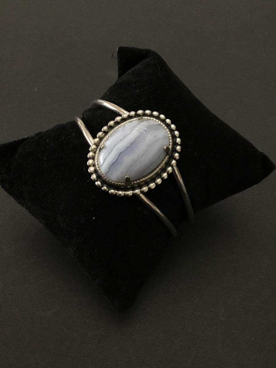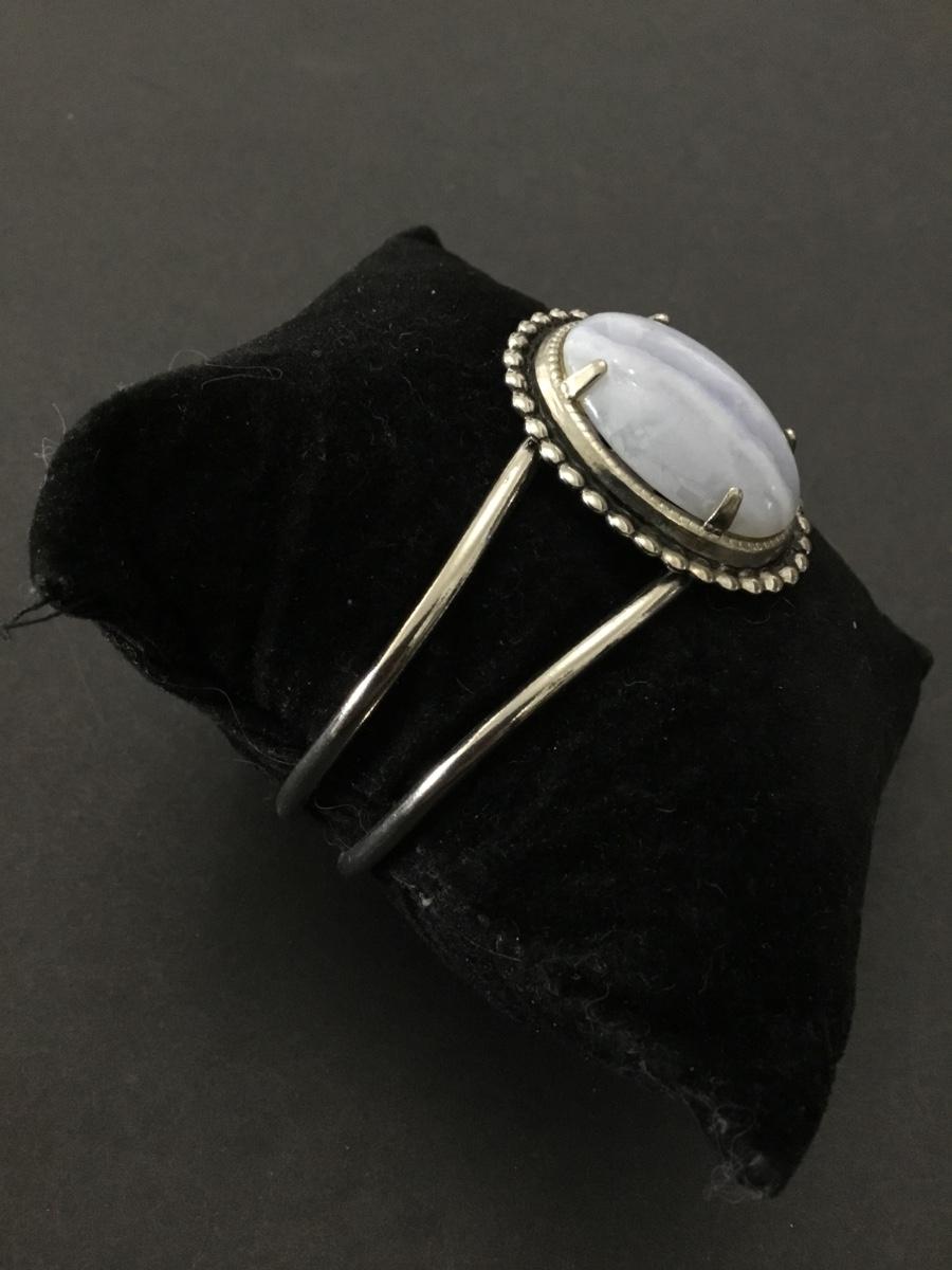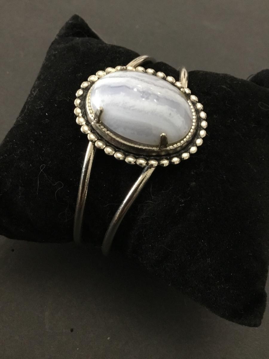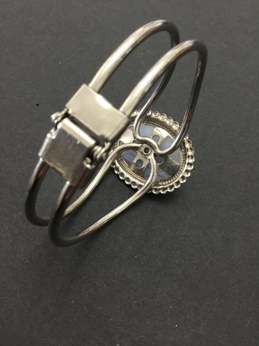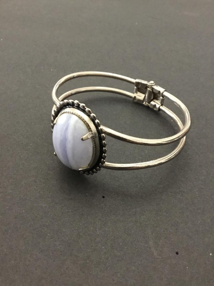Beautiful vintage Silver plated, agate stone hinged bracelet