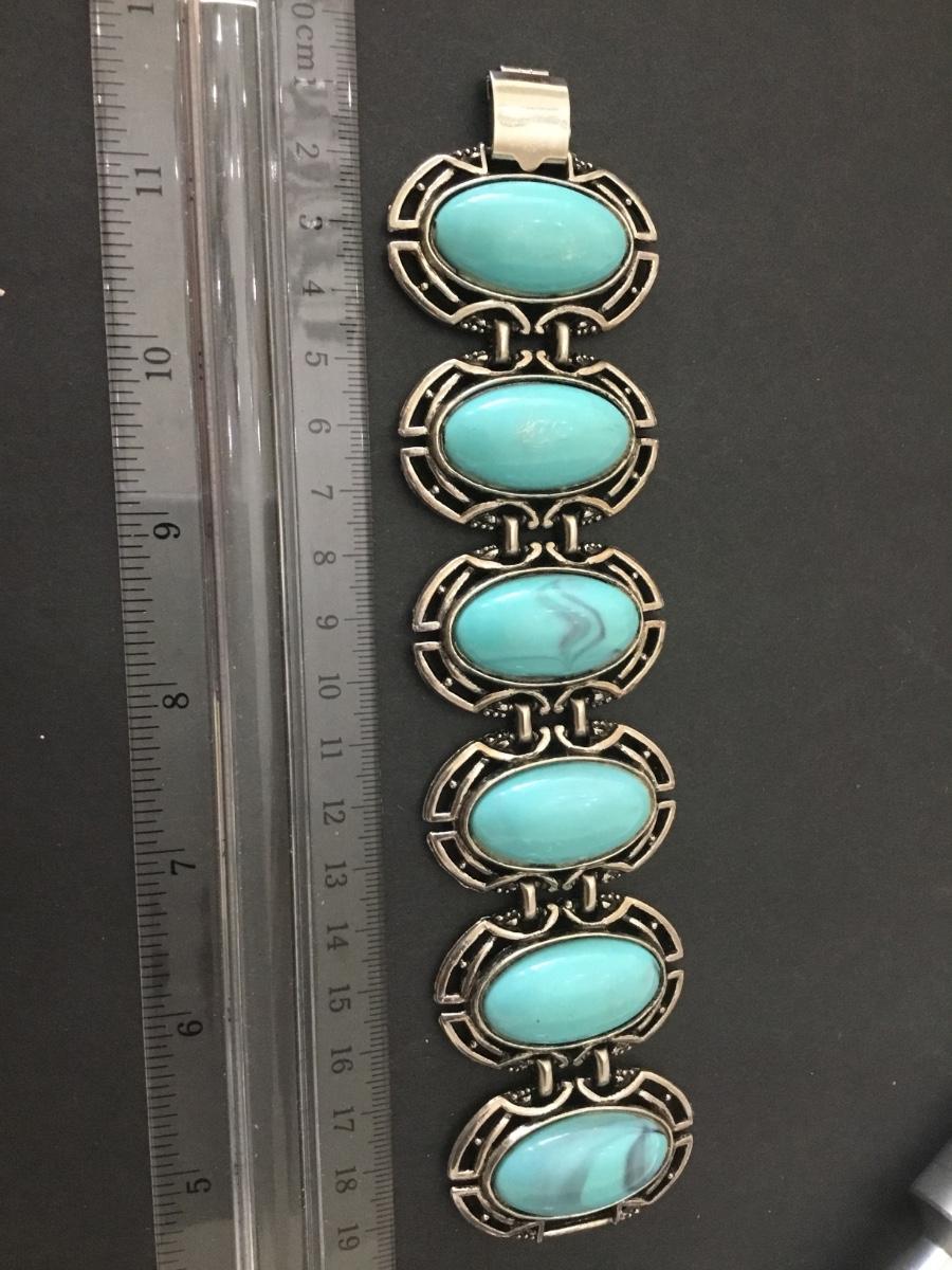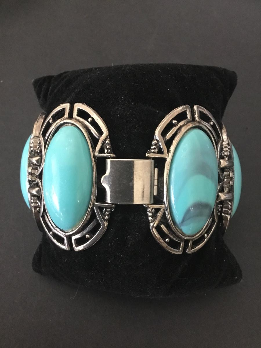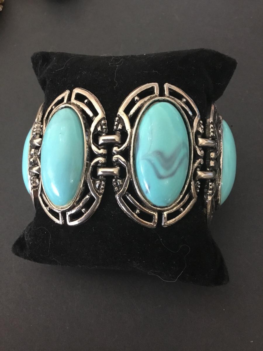 Beautiful vintage, Silver tone faux turquoise, stone wide statement bracelet, vintage