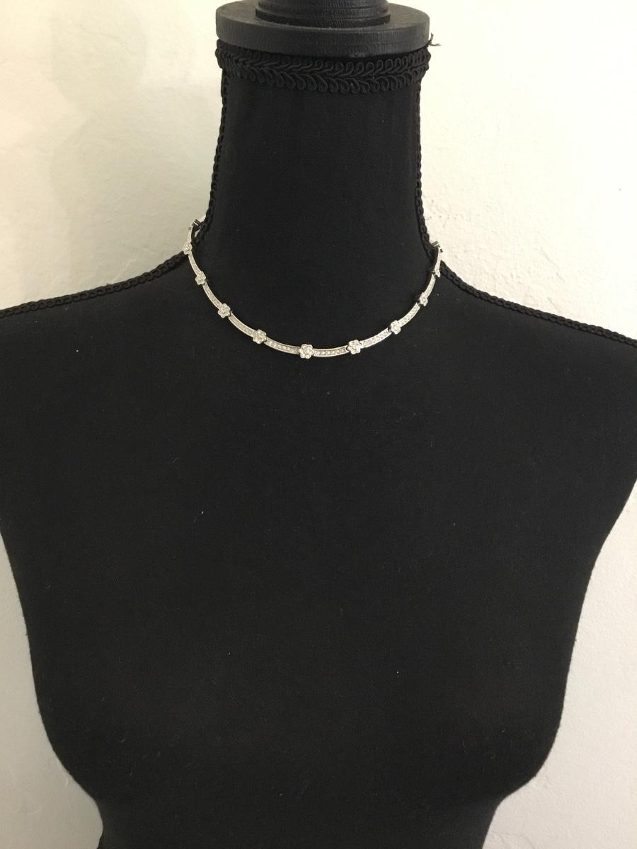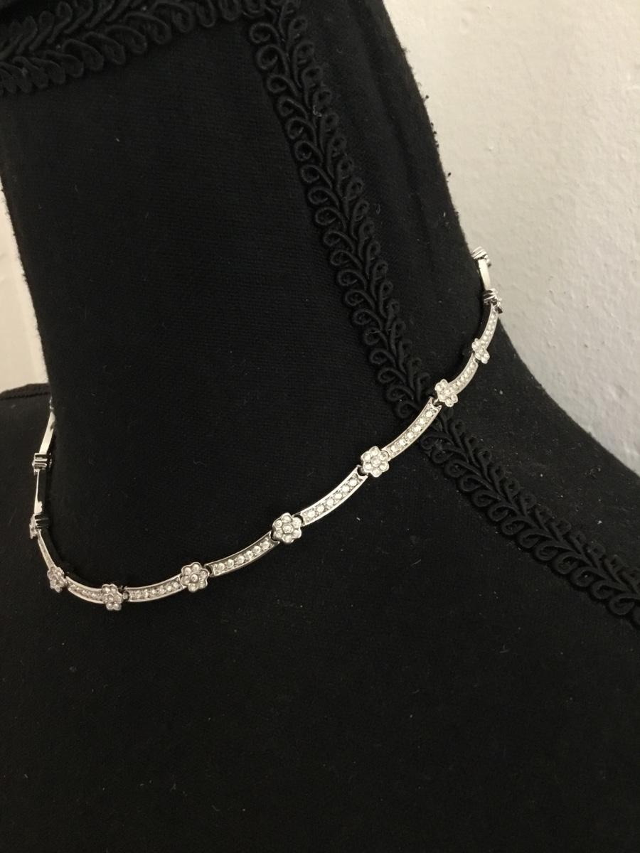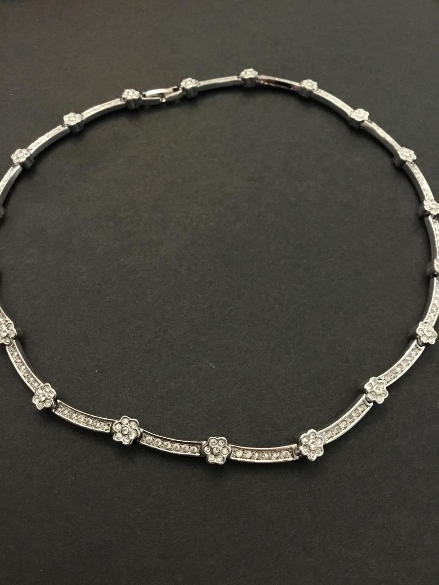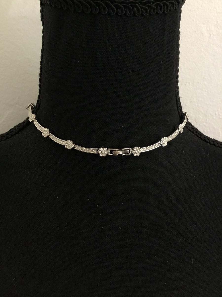 Beautiful vintage Silver tone flower, rhinestone collar necklace
