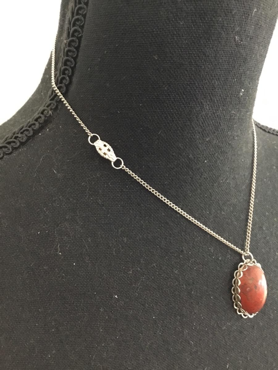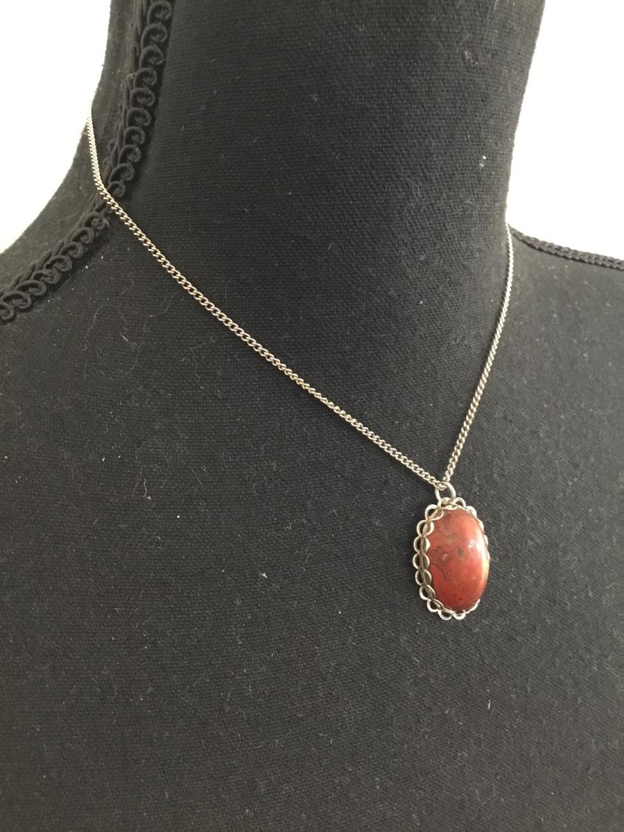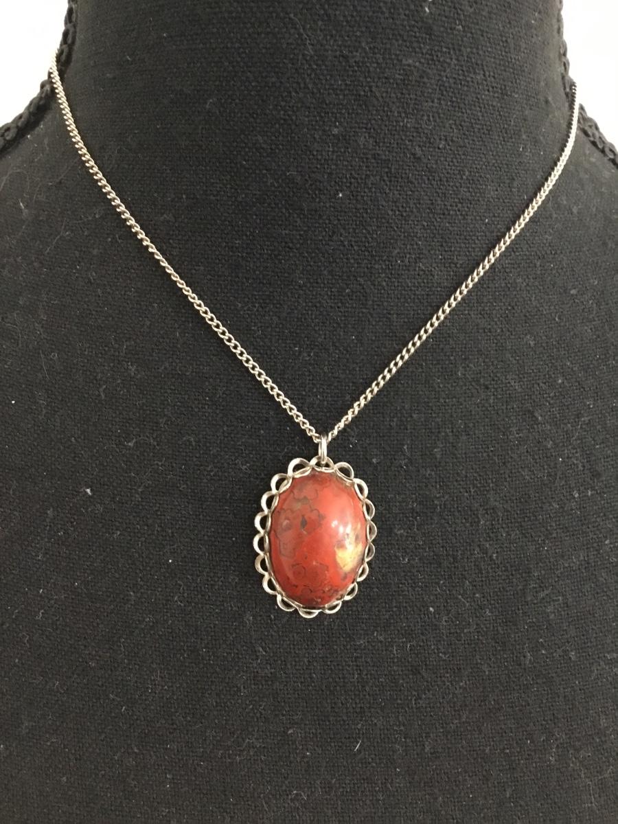 Beautiful vintage silver tone stone pendant and chain necklace
