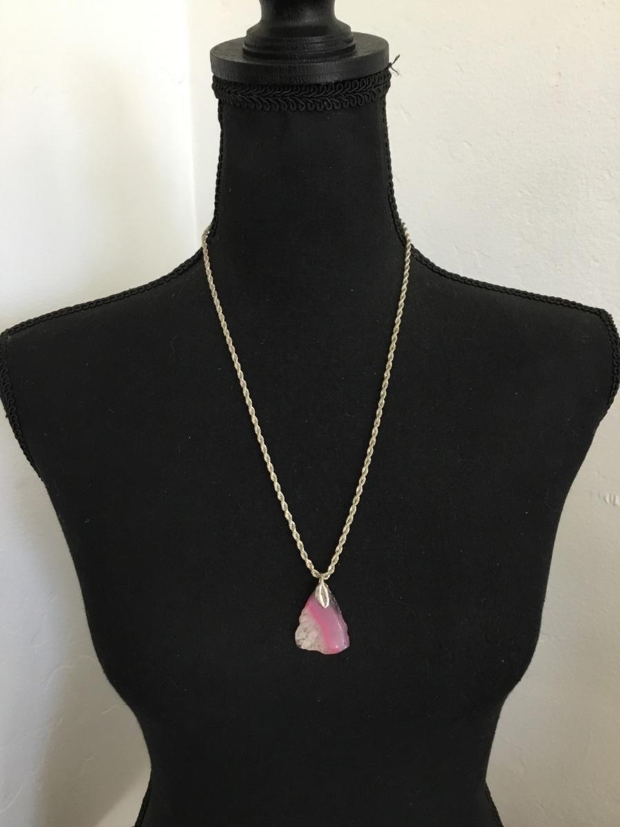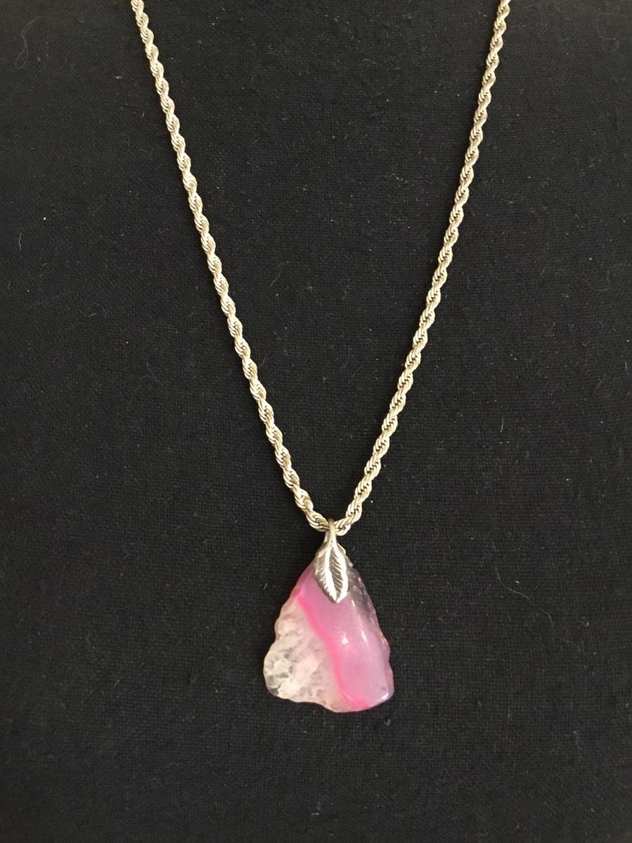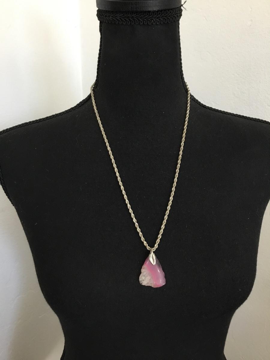Beautiful, vintage, silver toned, chain and pink, purple, crystal agate stone pendant