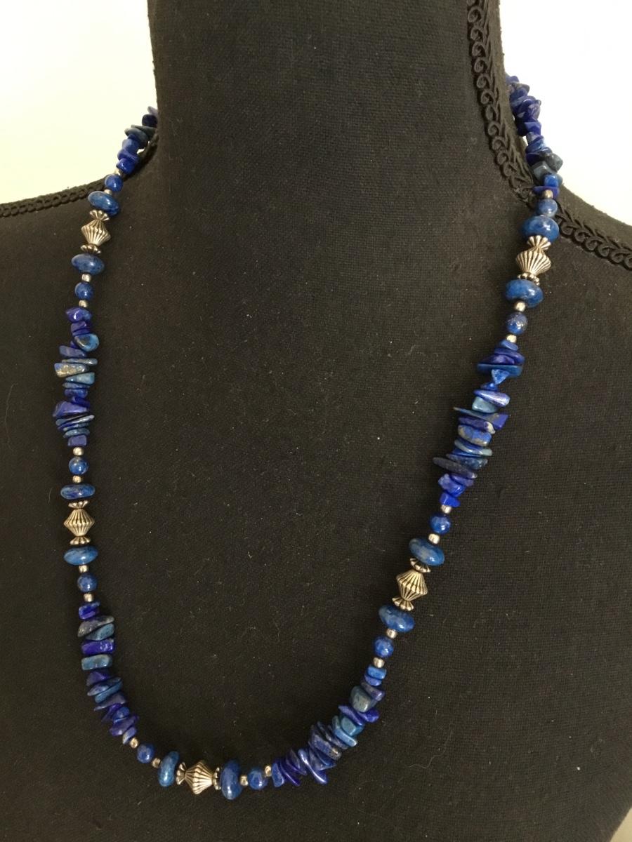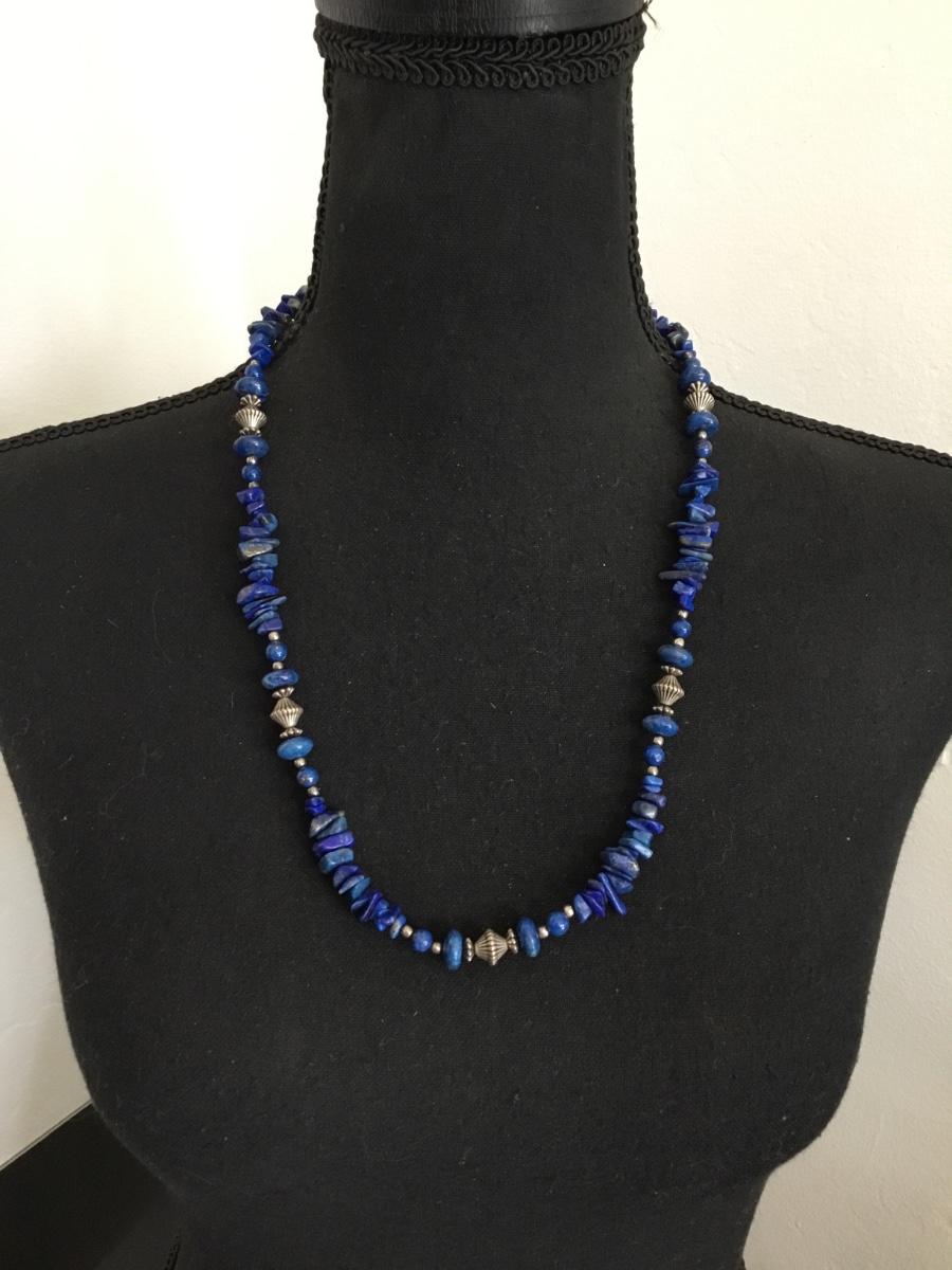 Beautiful vintage, silver toned, lapis, lazuli gemstone necklace