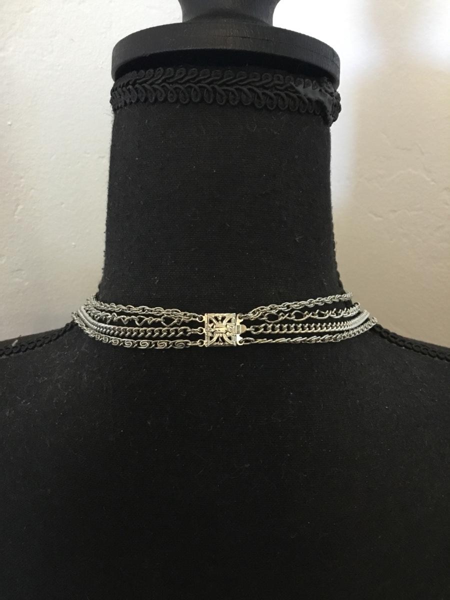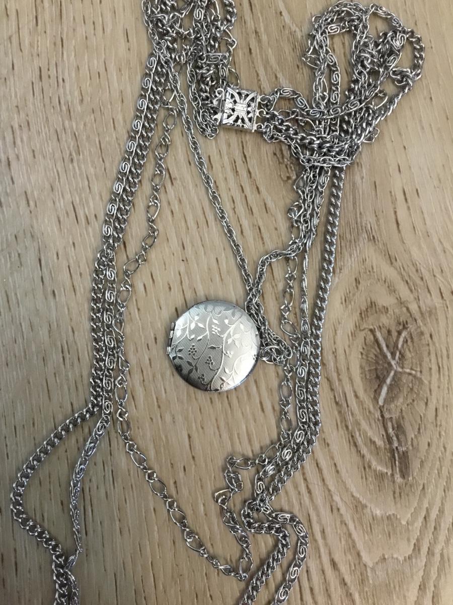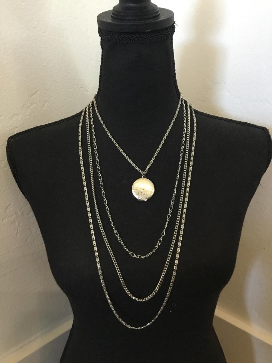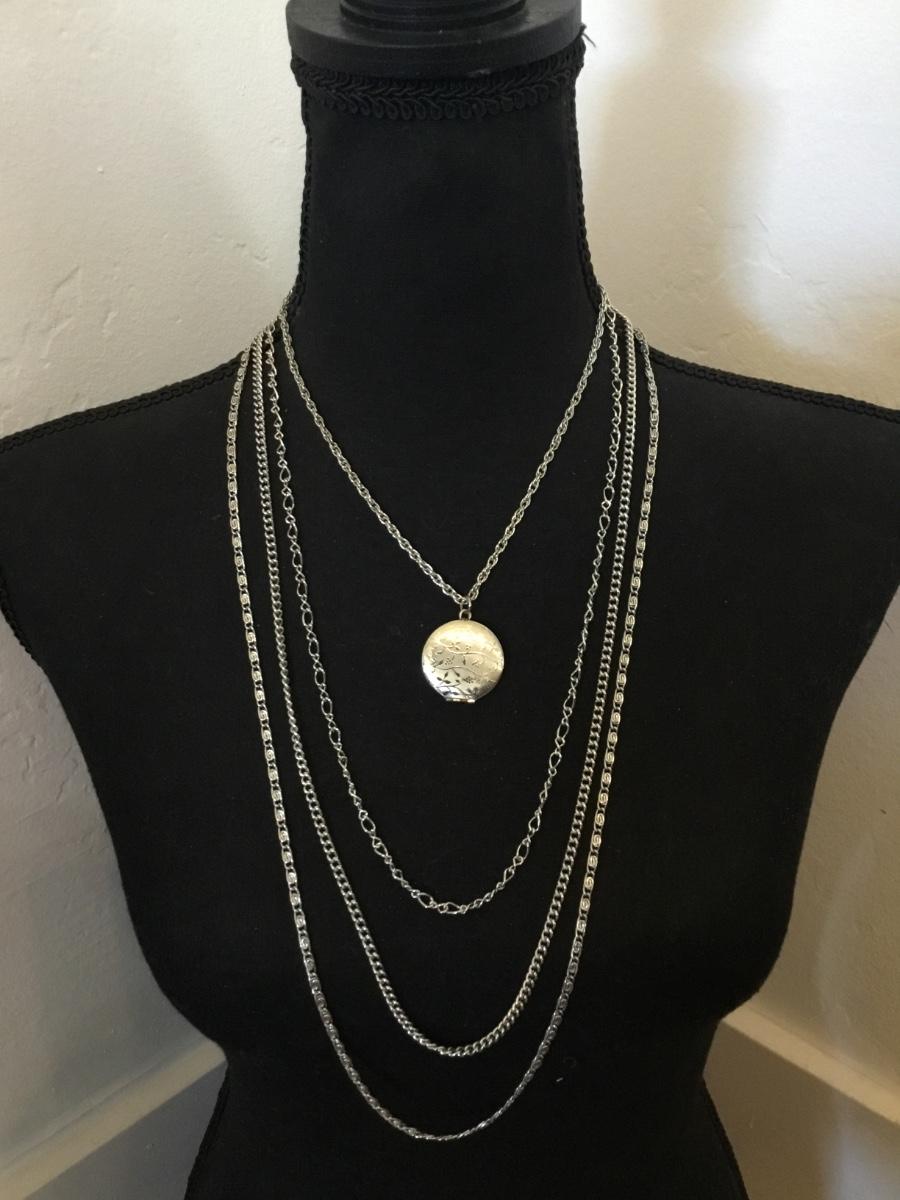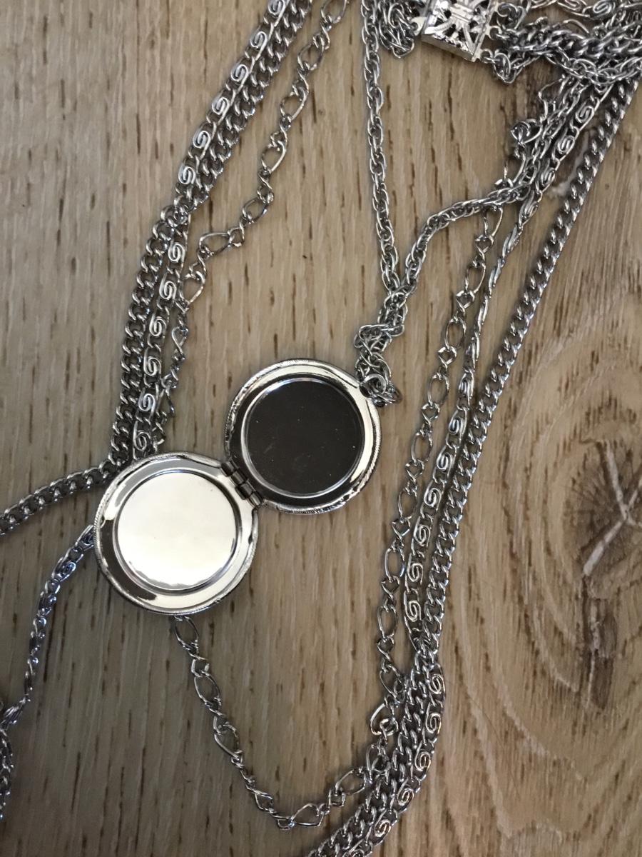 Beautiful, vintage, silver toned, multistrand chain locket statement necklace