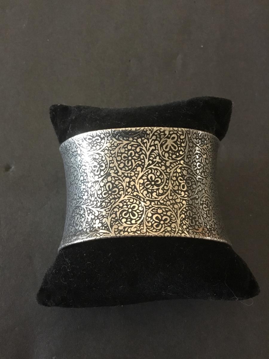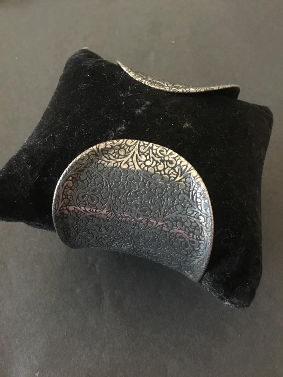 Beautiful vintage, Silvertone cuff bracelet, textured, flower designs