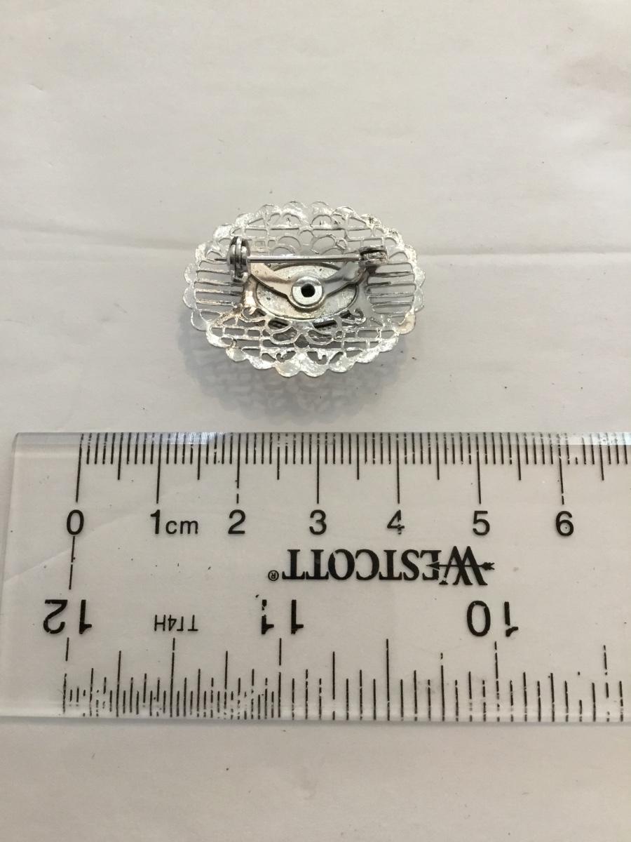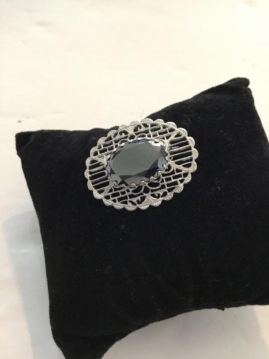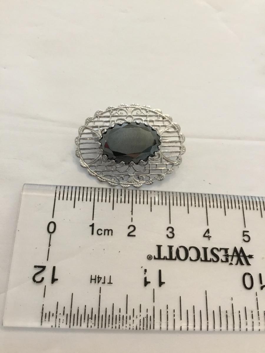 Beautiful Vintage Silvertone Filagree & hematite glass pin brooch