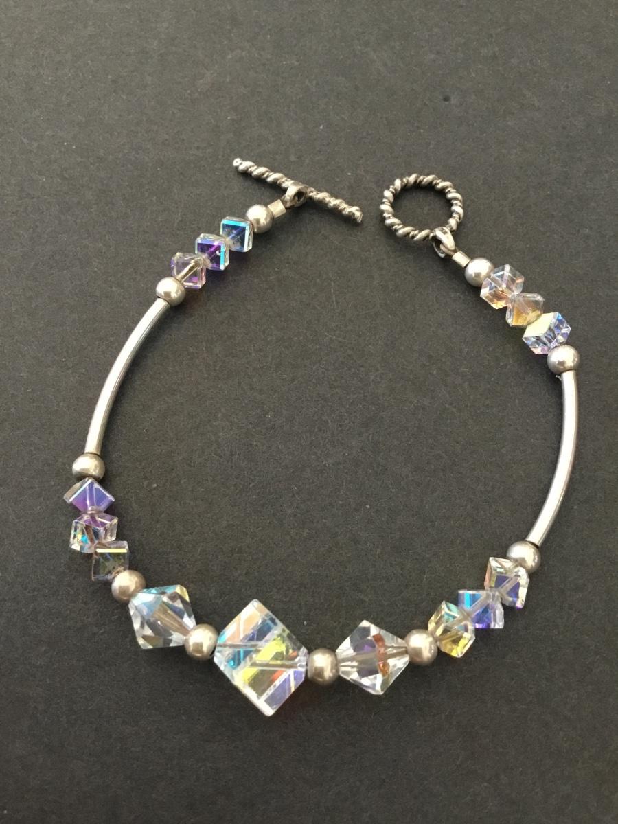 Beautiful vintage, sterling silver crystal toggle bracelet
