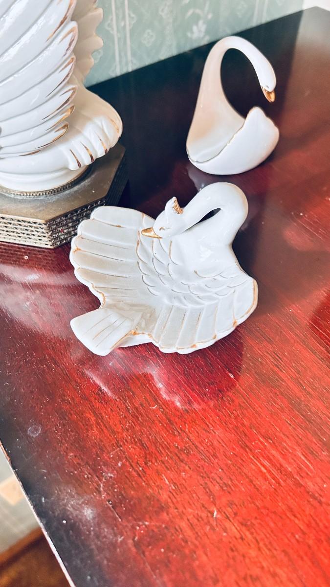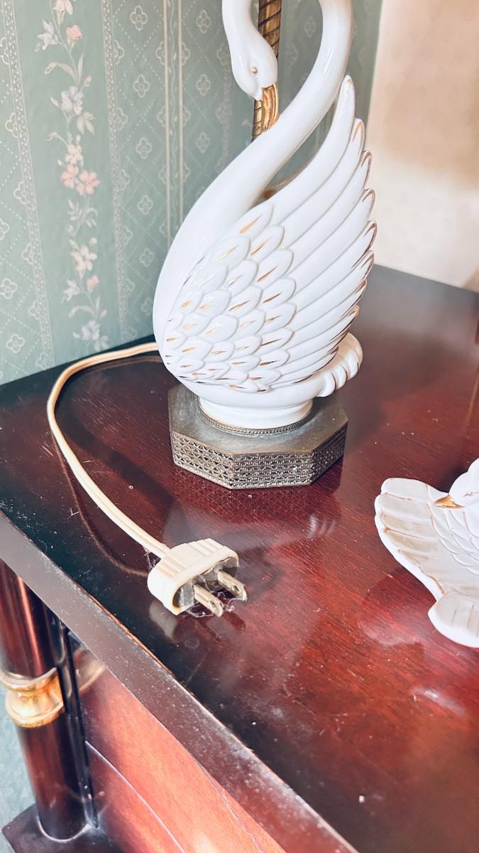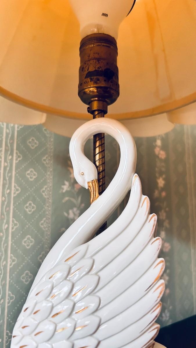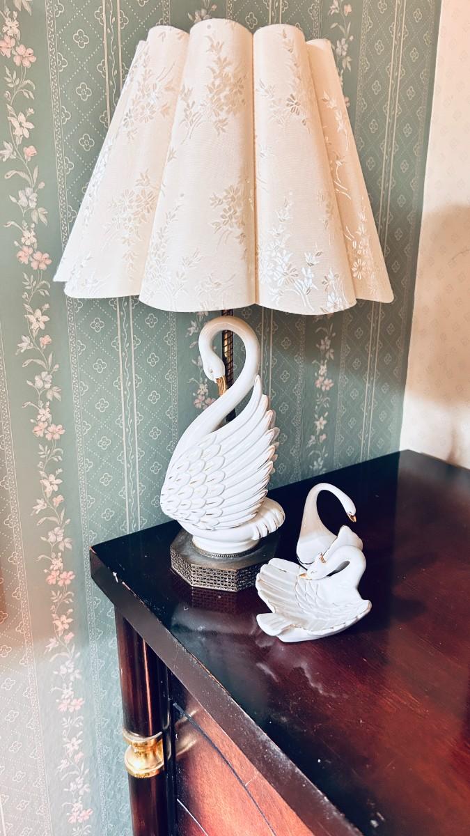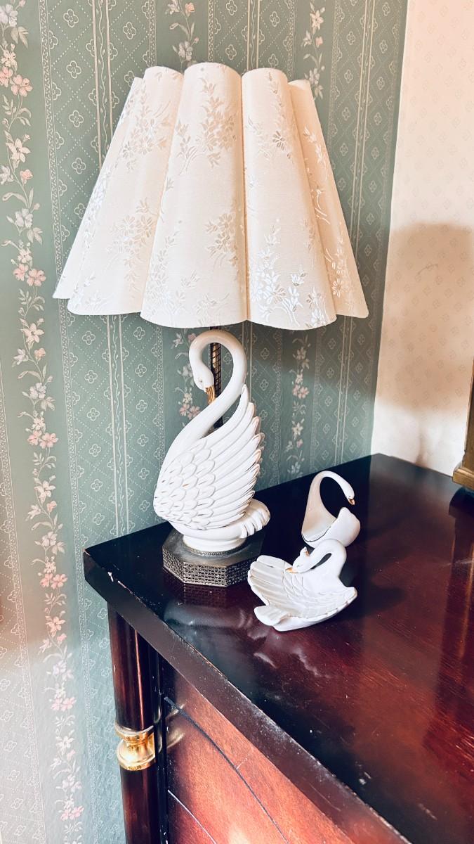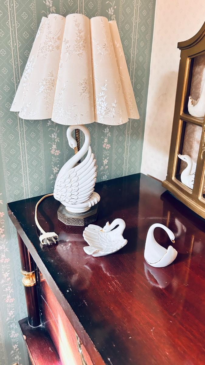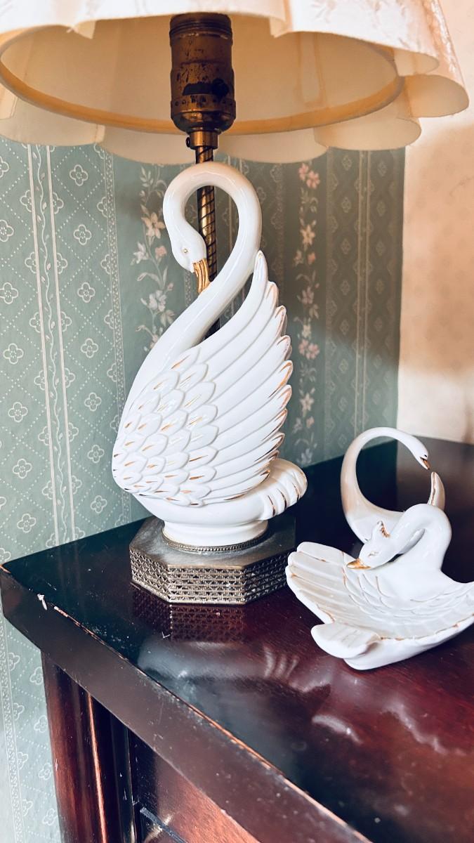 BEAUTIFUL VINTAGE SWAN LAMP AND ACCENTING SWANS