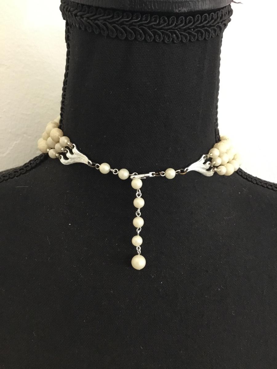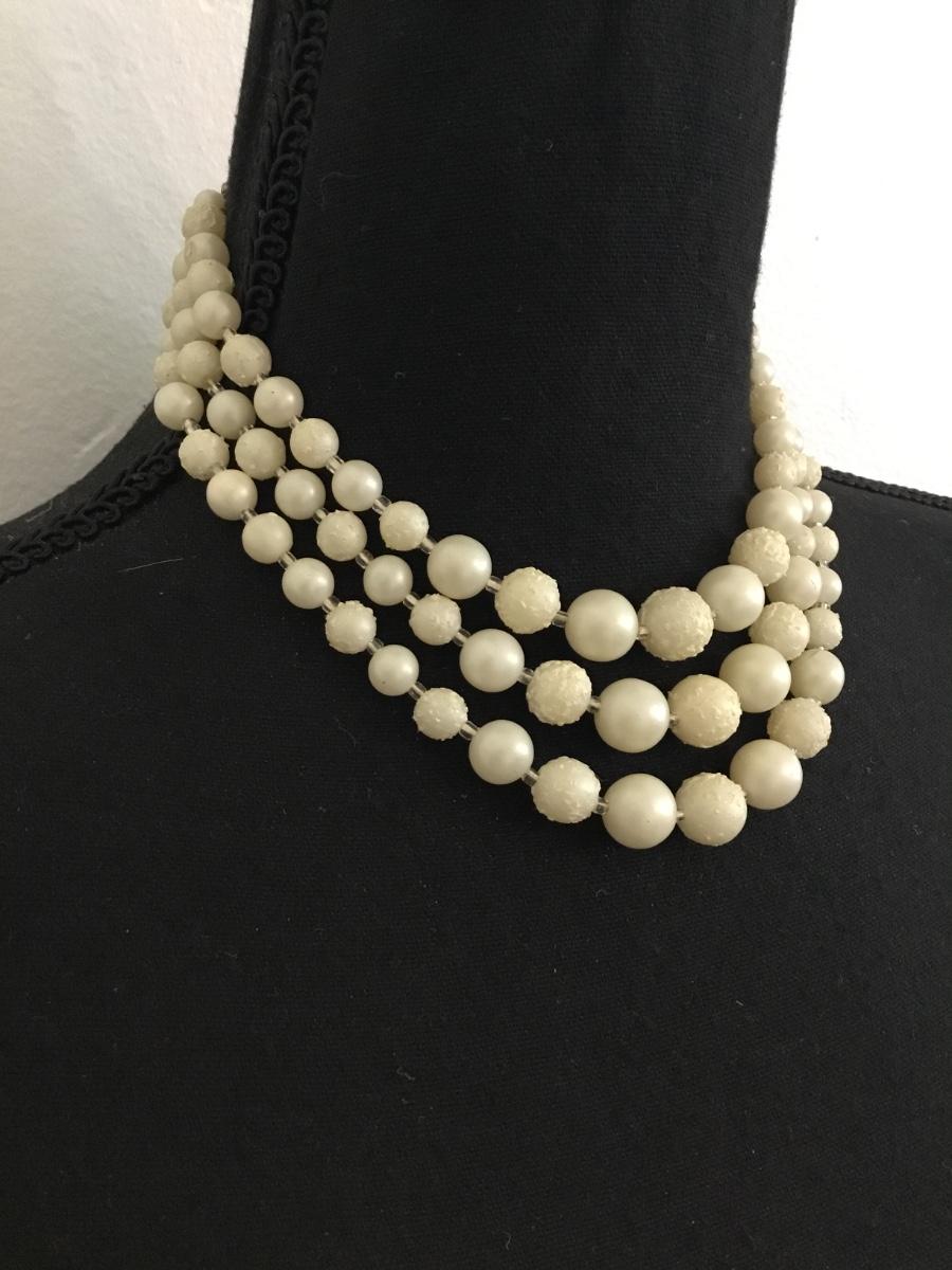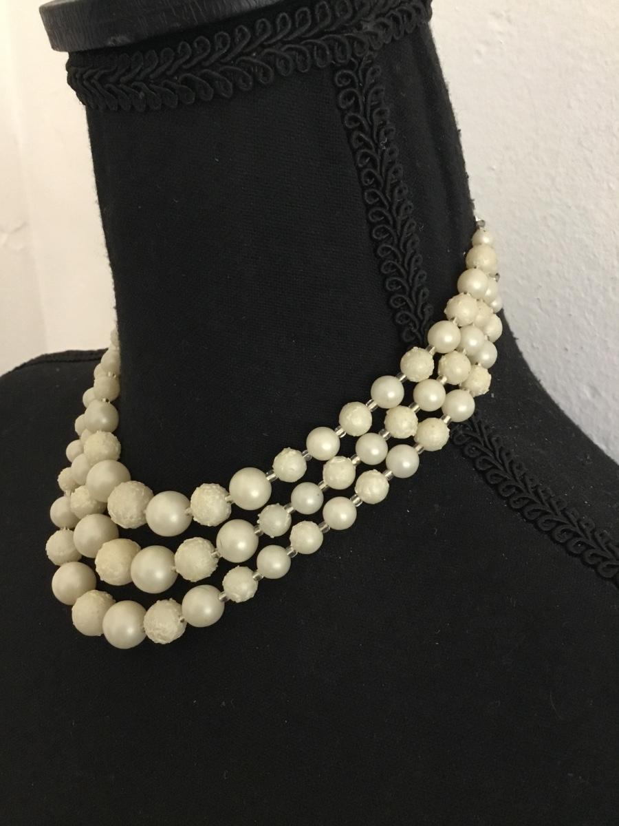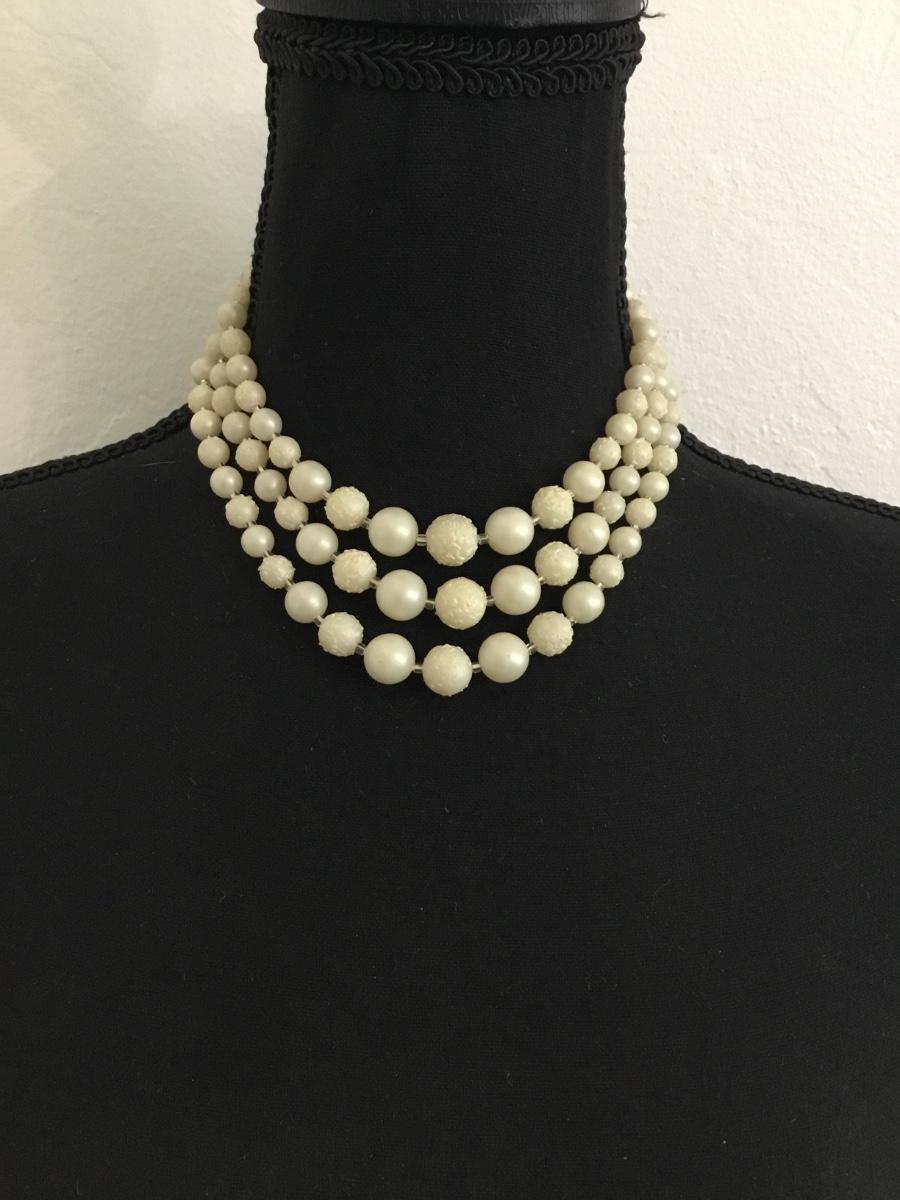 Beautiful vintage, three strand sugar, beads or textured bead choker necklace