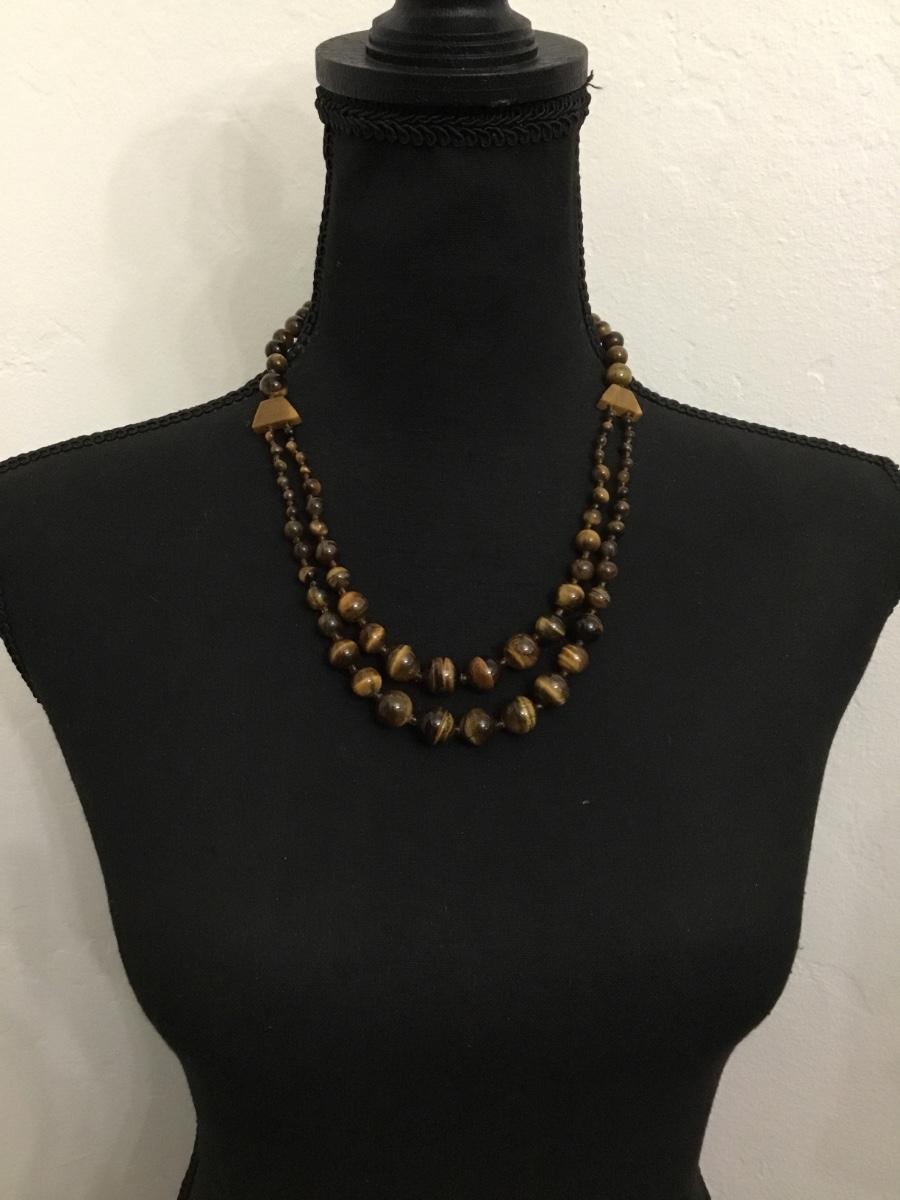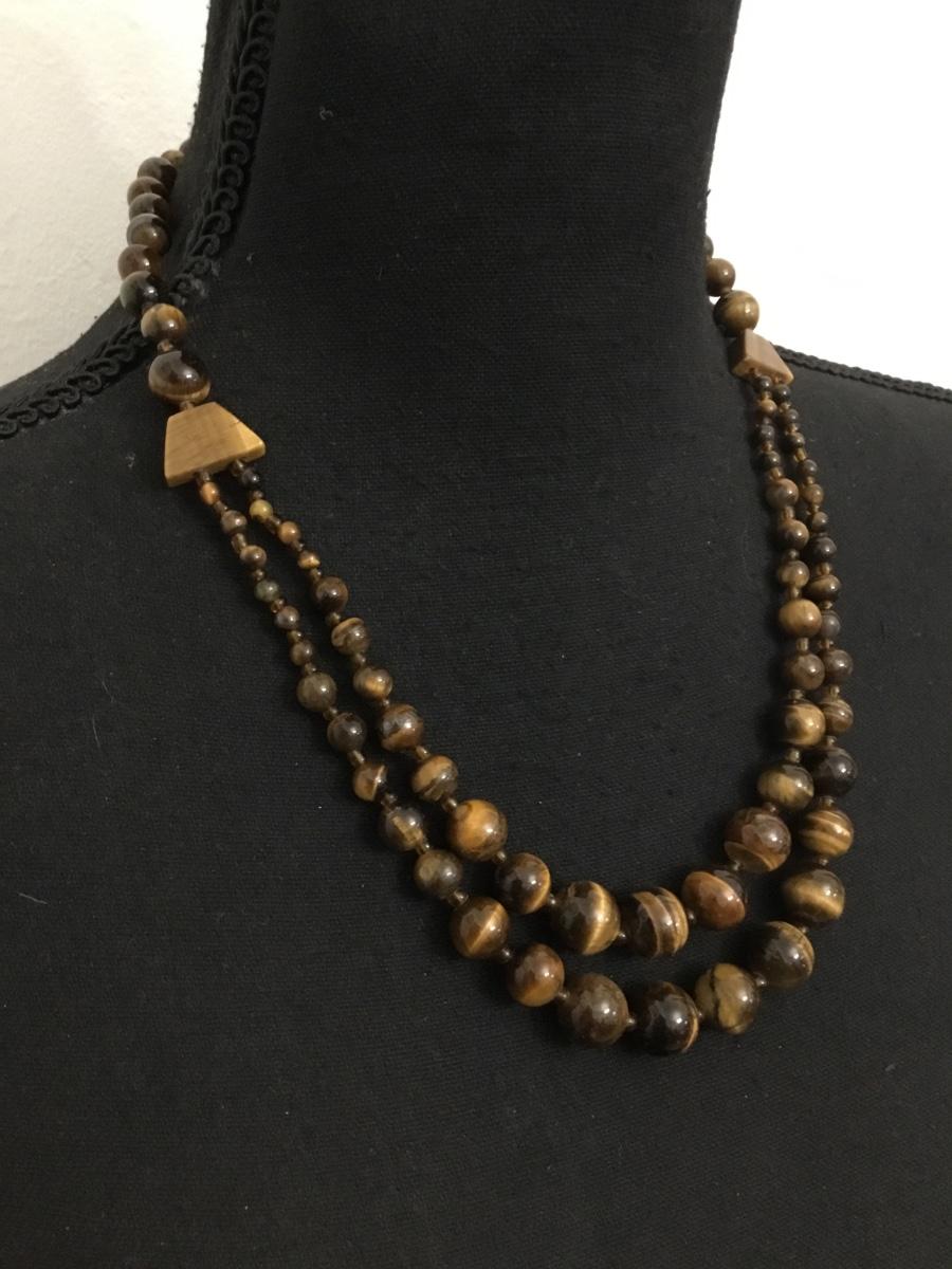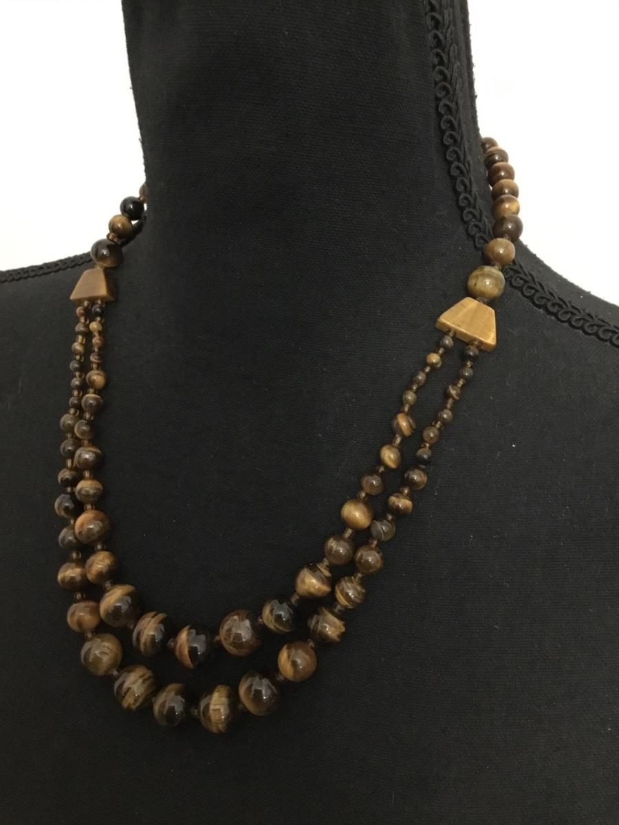 Beautiful, vintage, tigers, eye bead, double strand statement, necklace