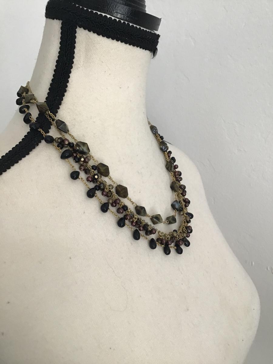 Beautiful vintage, Trio strand glass beaded necklace, multicolors. Please see attached photos.