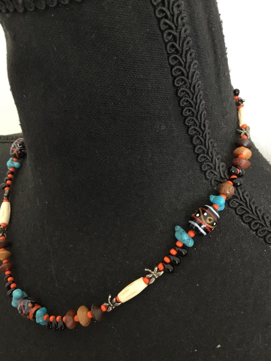 Beautiful vintage, turquoise, glass bead, gemstone, and bone bead necklace