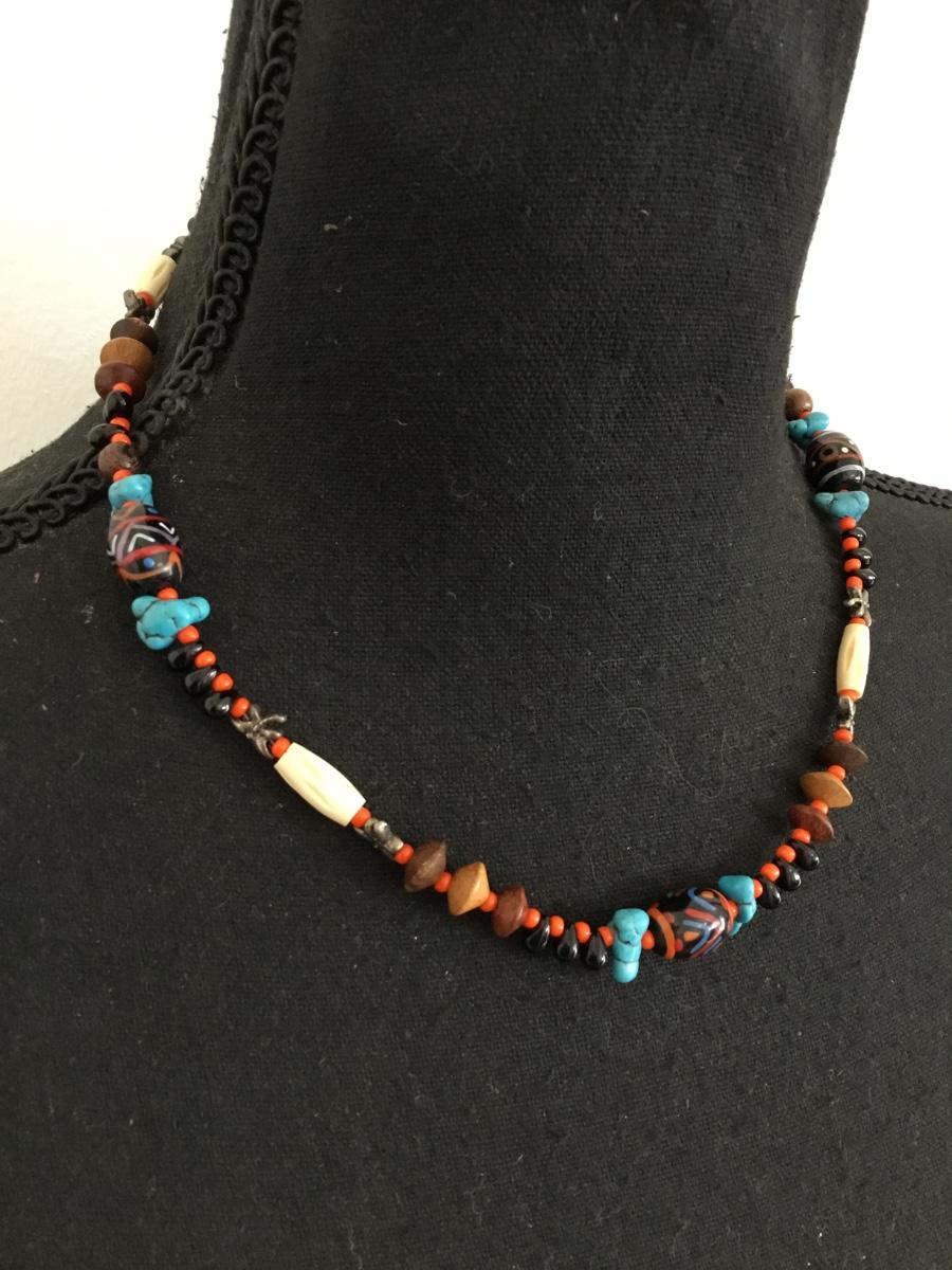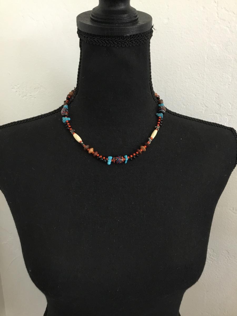 Beautiful vintage, turquoise, glass bead, gemstone, and bone bead necklace