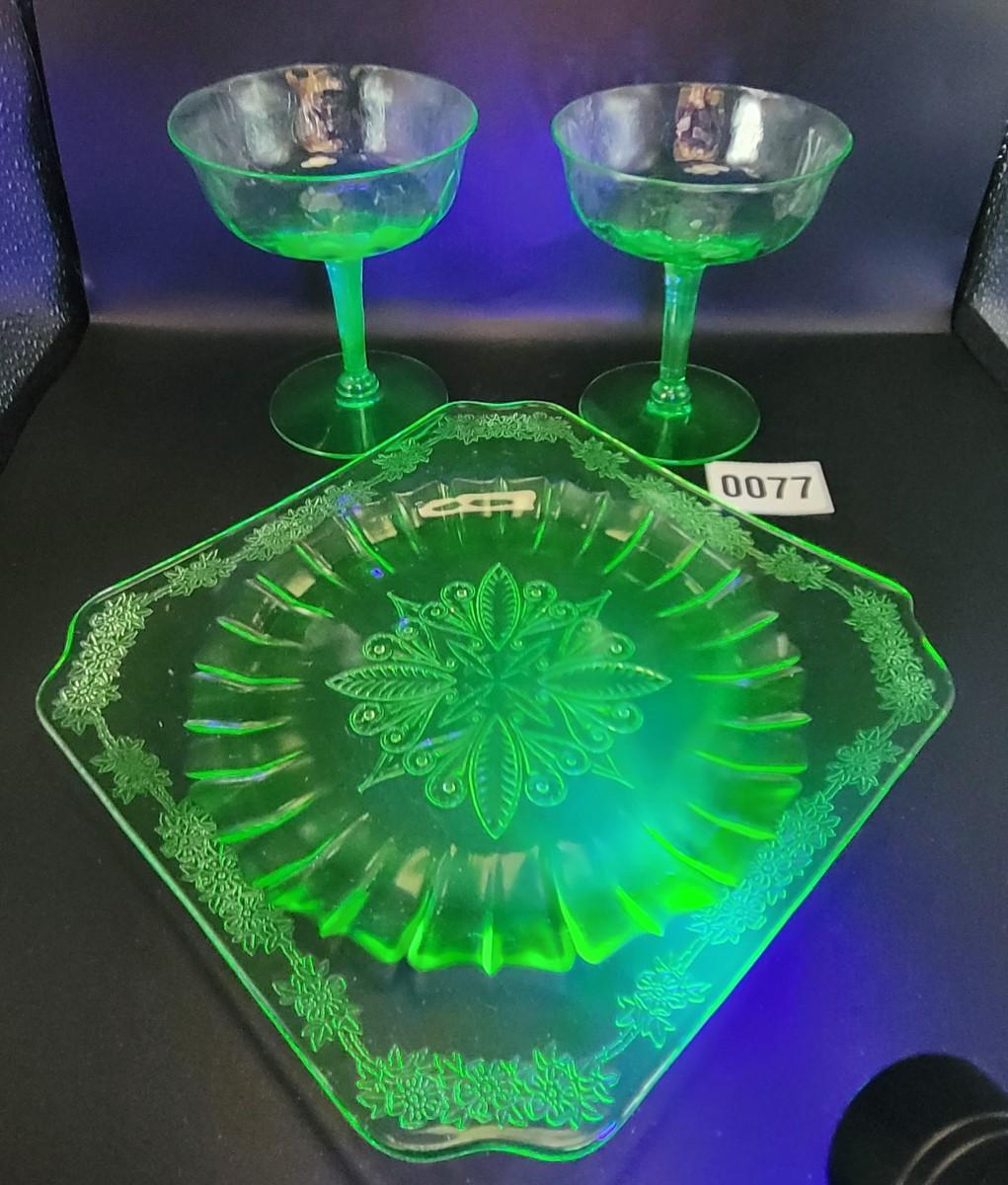 7 Pc uranium glass. Glows green when placed under UV Light.