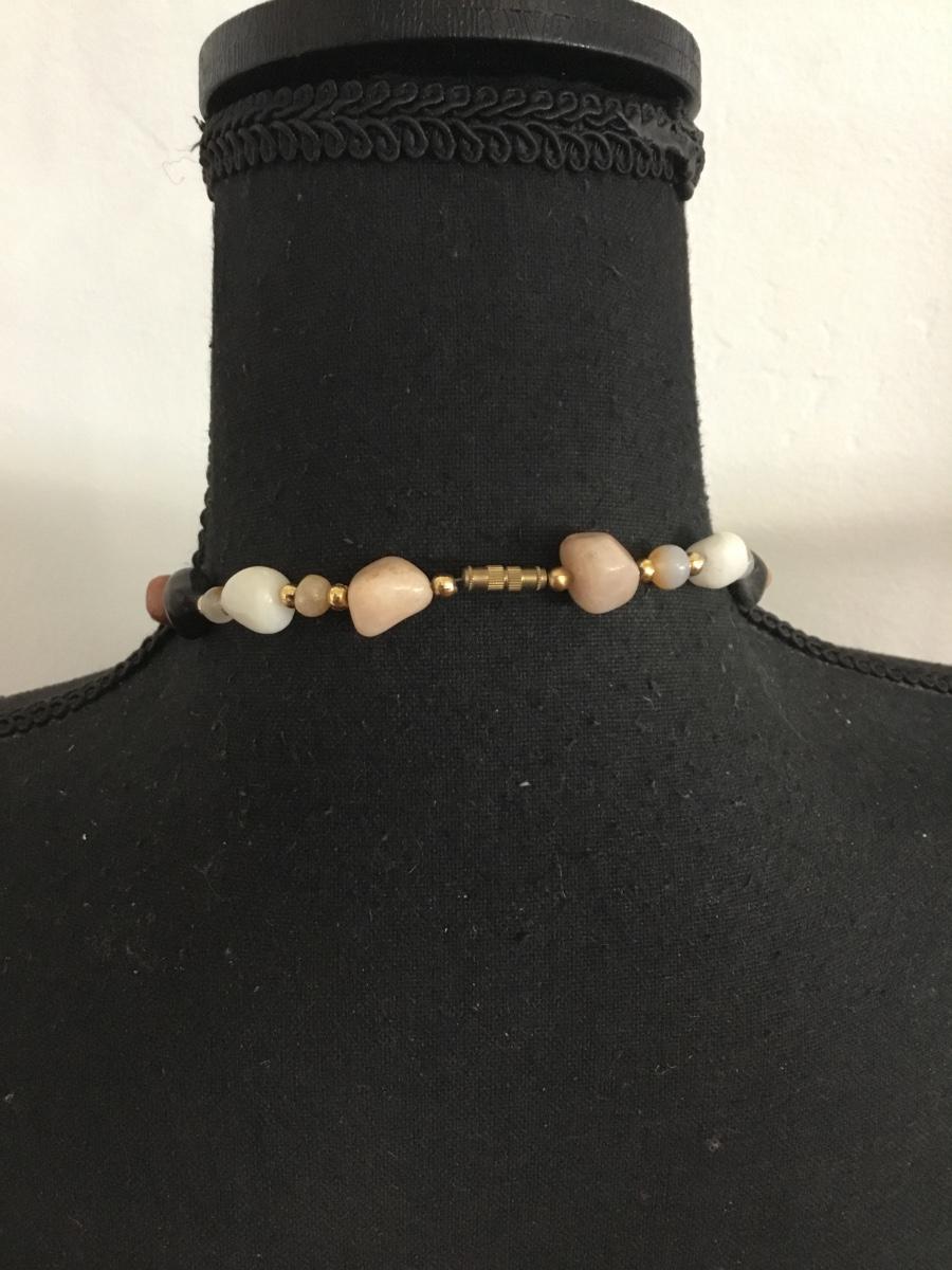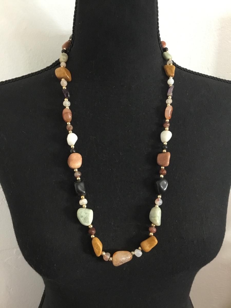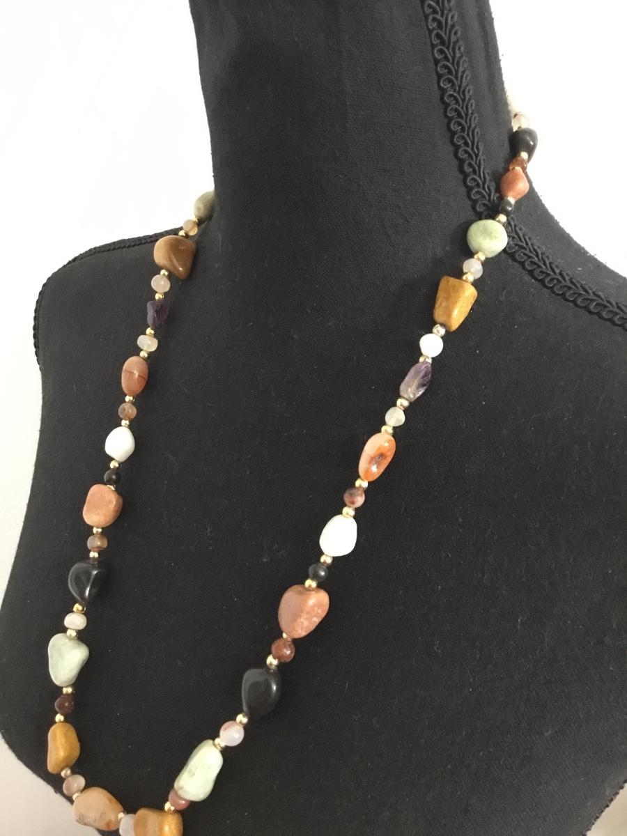 Beautiful vintage very nice polished gemstone and gold tone, bead statement, necklace