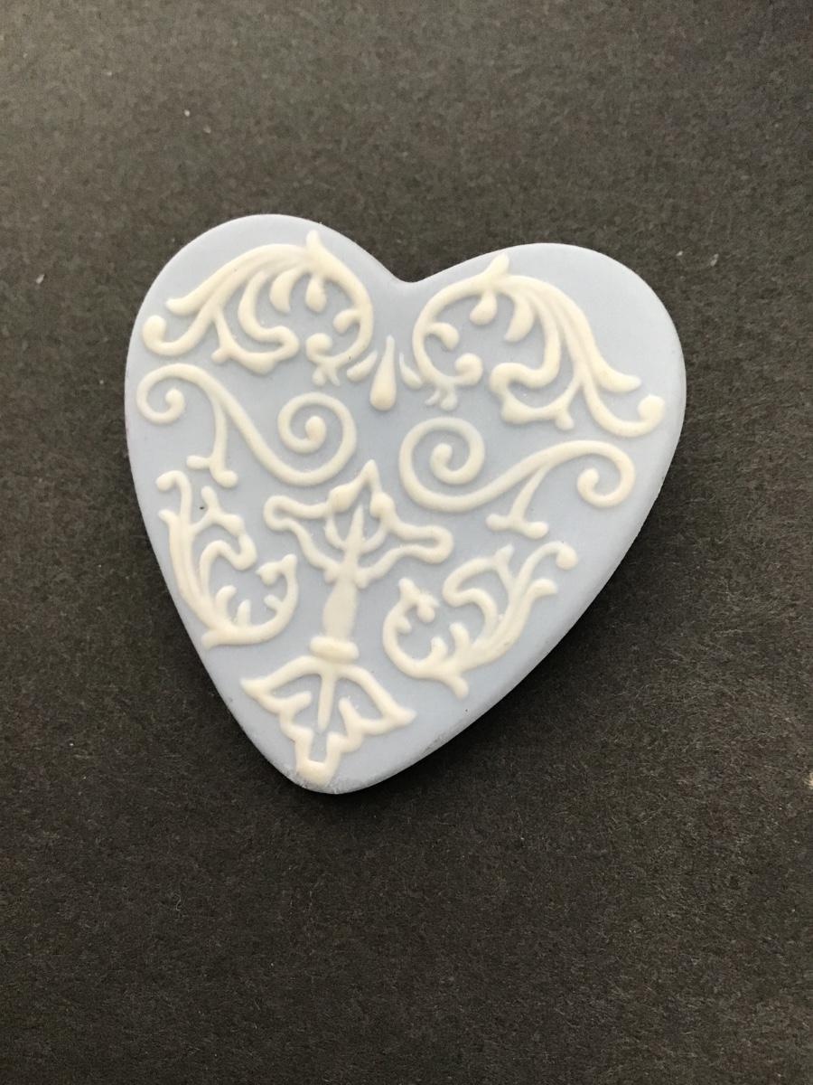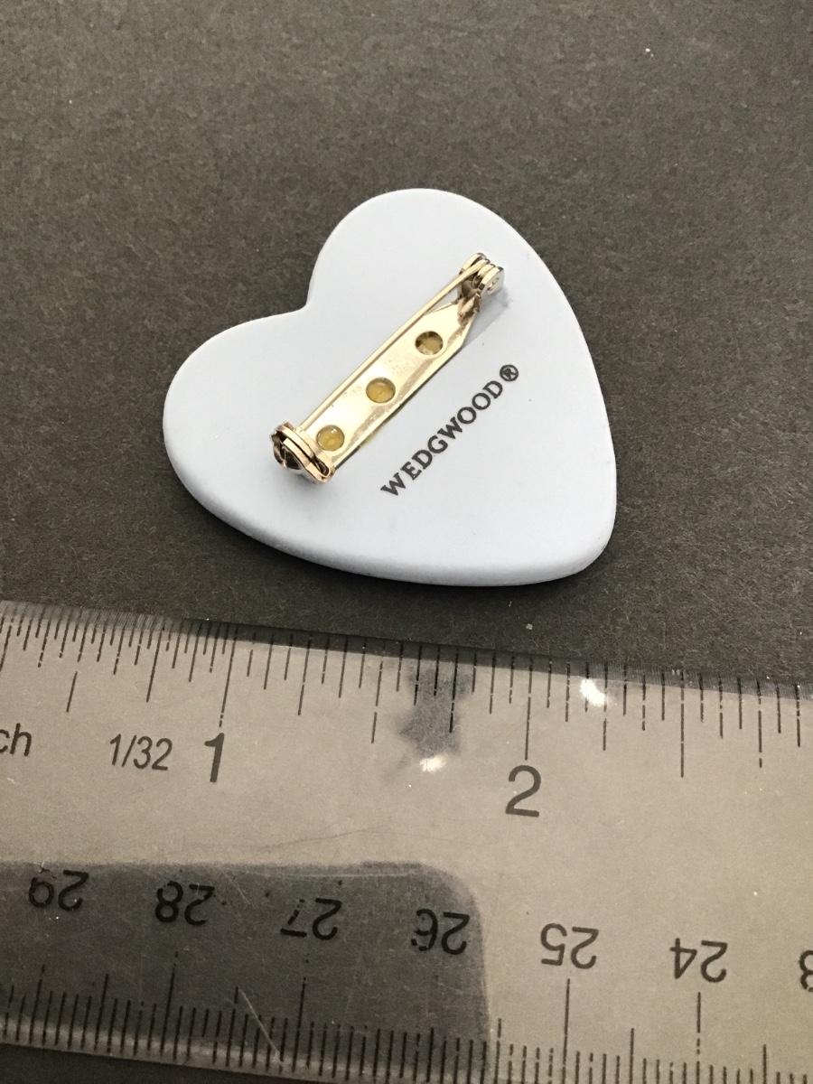 Beautiful vintage Wedgewood, blue and white porcelain Jasperare heart brooch signed