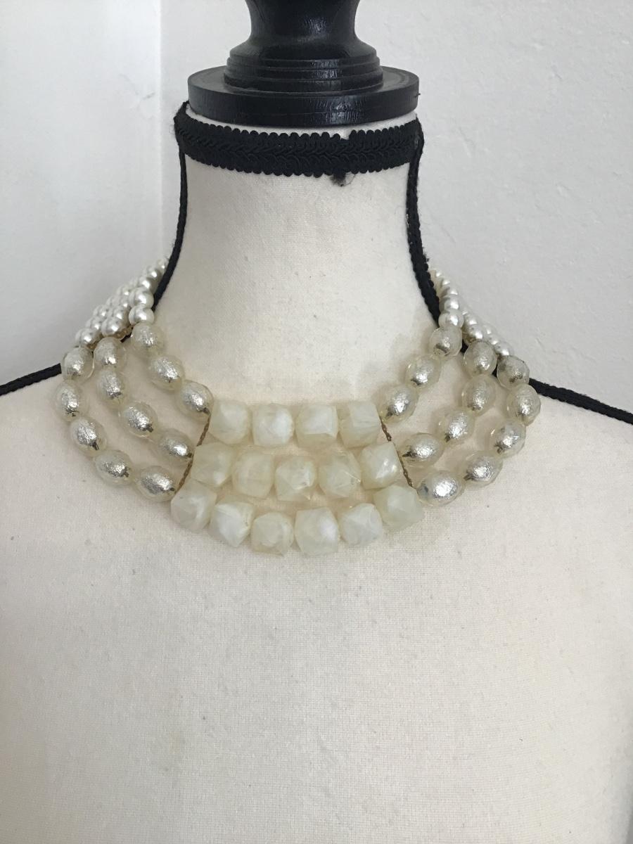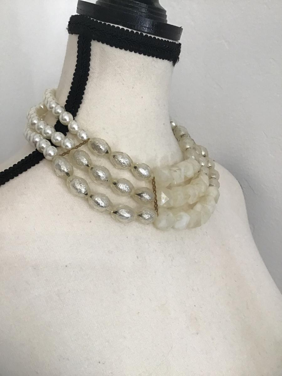 Beautiful, vintage, multi strand, white chunky beaded choker necklace. Please see attached photos.
