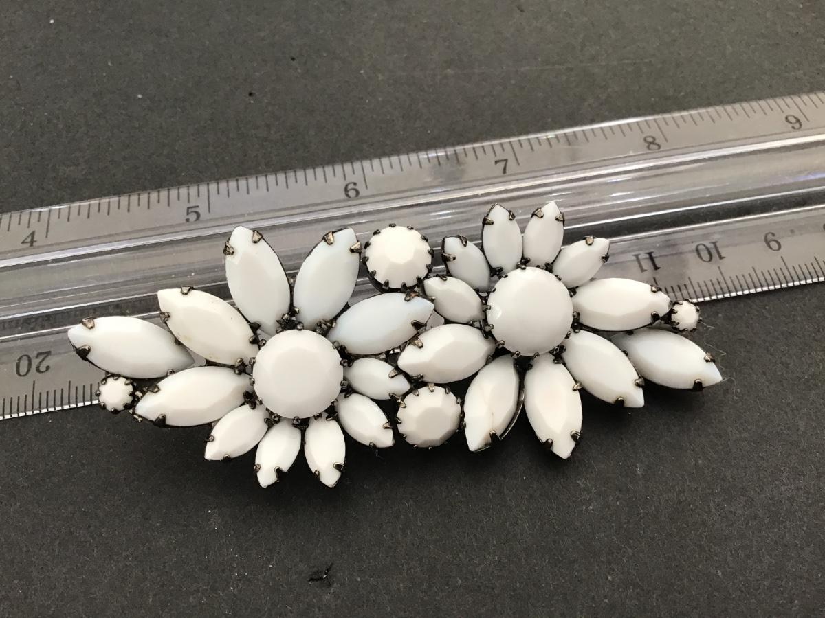 Beautiful Vintage White Milk Glass Faceted Brooch