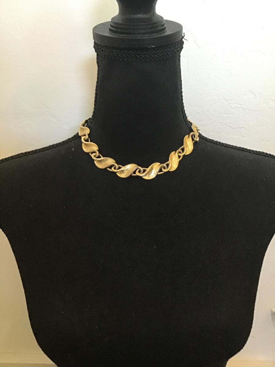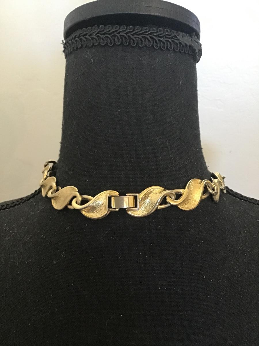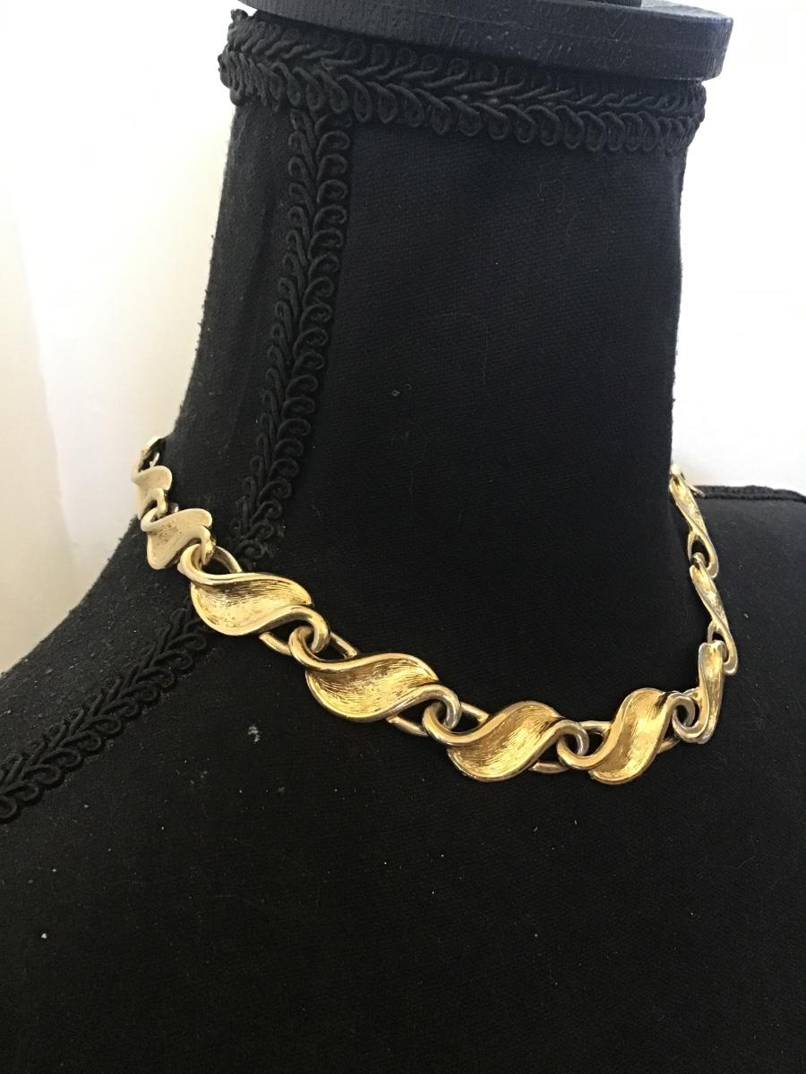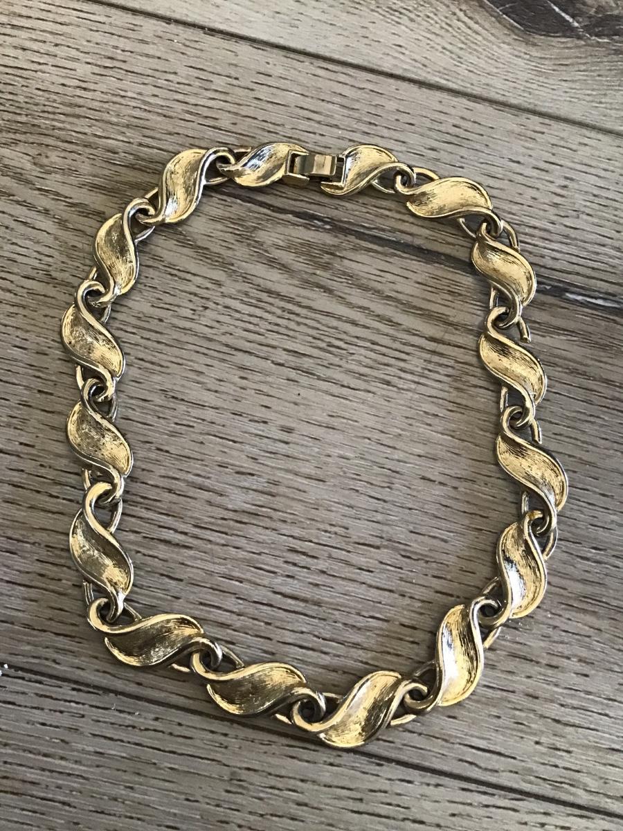 Beautiful vintage, wide scrolling edged, leave Gold, town, necklace, vintage jewelry, excellent condition