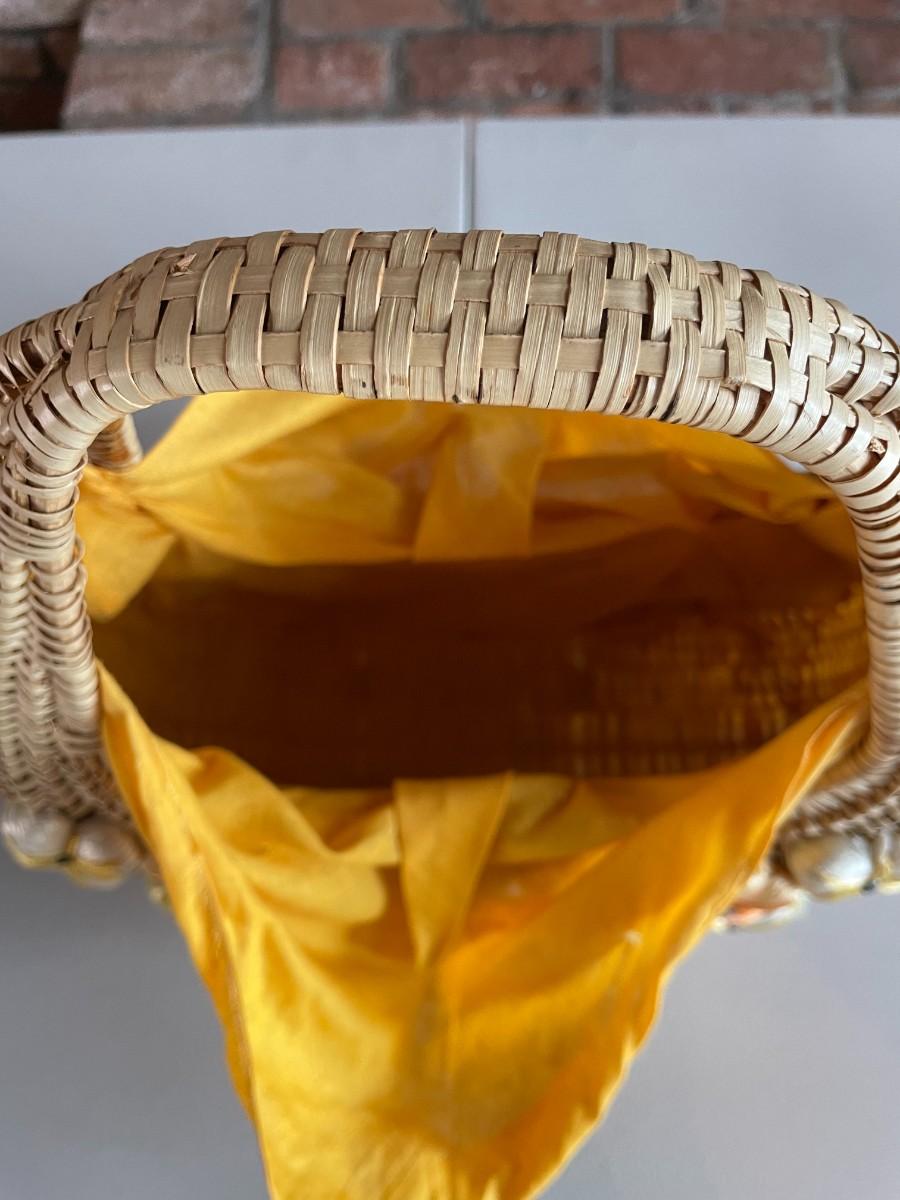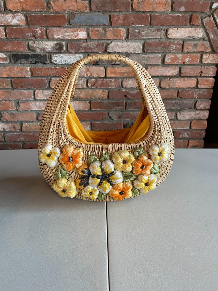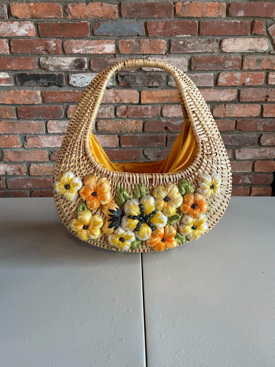 Beautiful Vintage Women's Embroidered Straw Woven Bag Purse