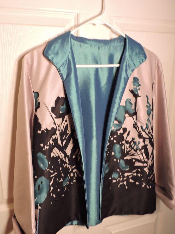 Beautiful jacket in teal and black. No tags. About a size 8-10 or Medium. **Please read Terms and Conditions before placing a bid. Pick up is Sunday, September 15, 2019 from 11am to 4pm and Tuesday, September 17 from 4pm-7pm in Sicklerville. All sales are final. All sales are as is, where is. Please review all photos. Any props included in photos are not included in listing. All measurements are approximate.
