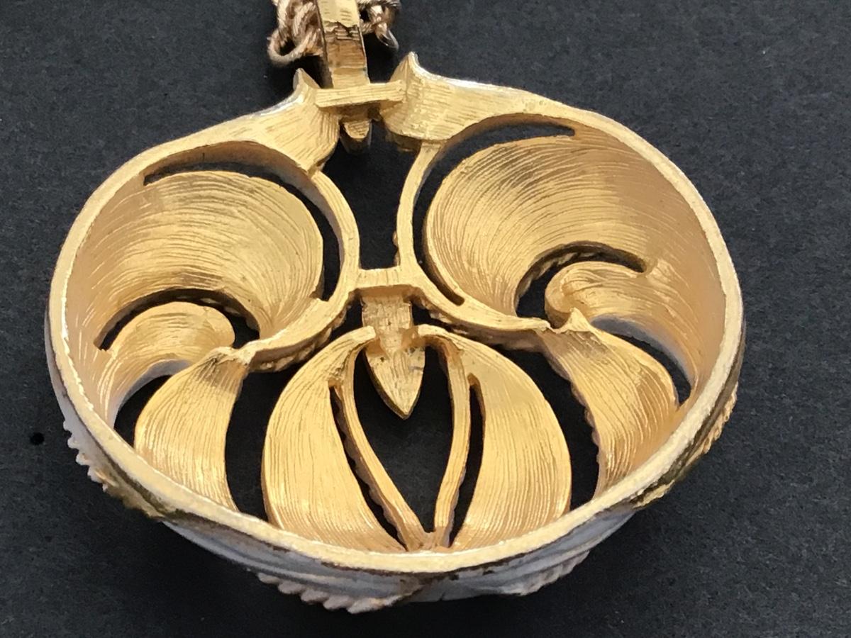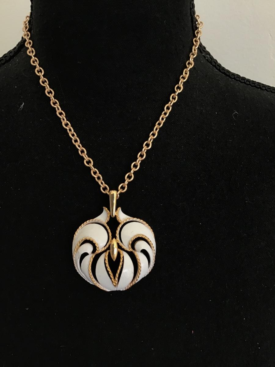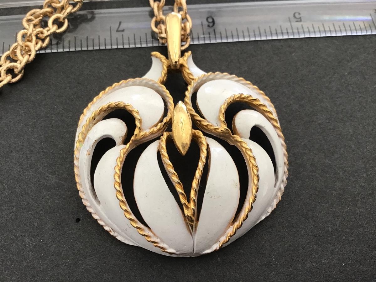 Beautiful White Enamel Gold Tone Vintage Pendant Necklace