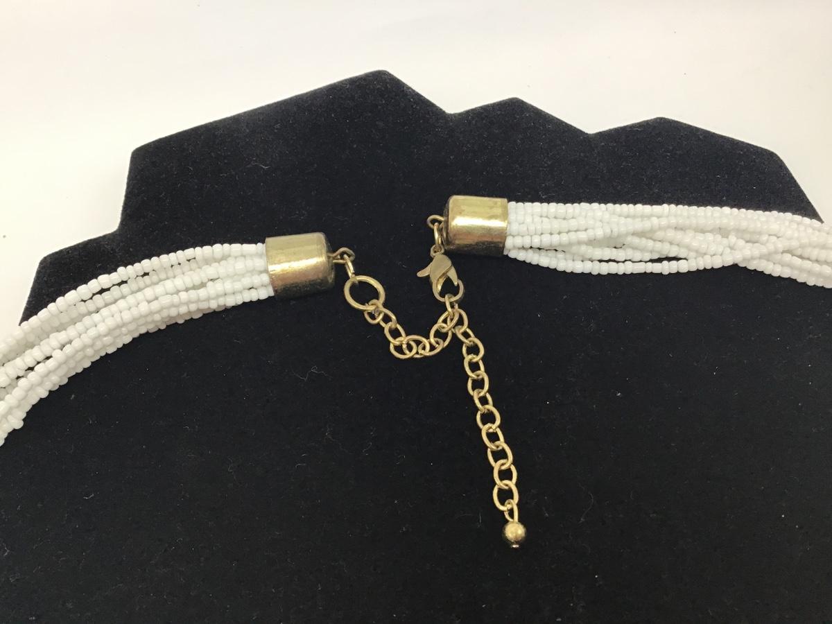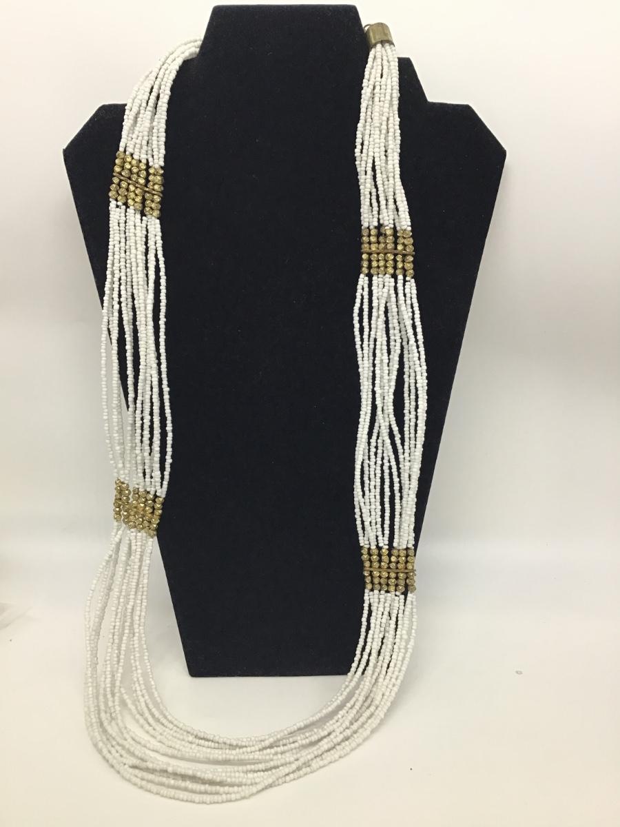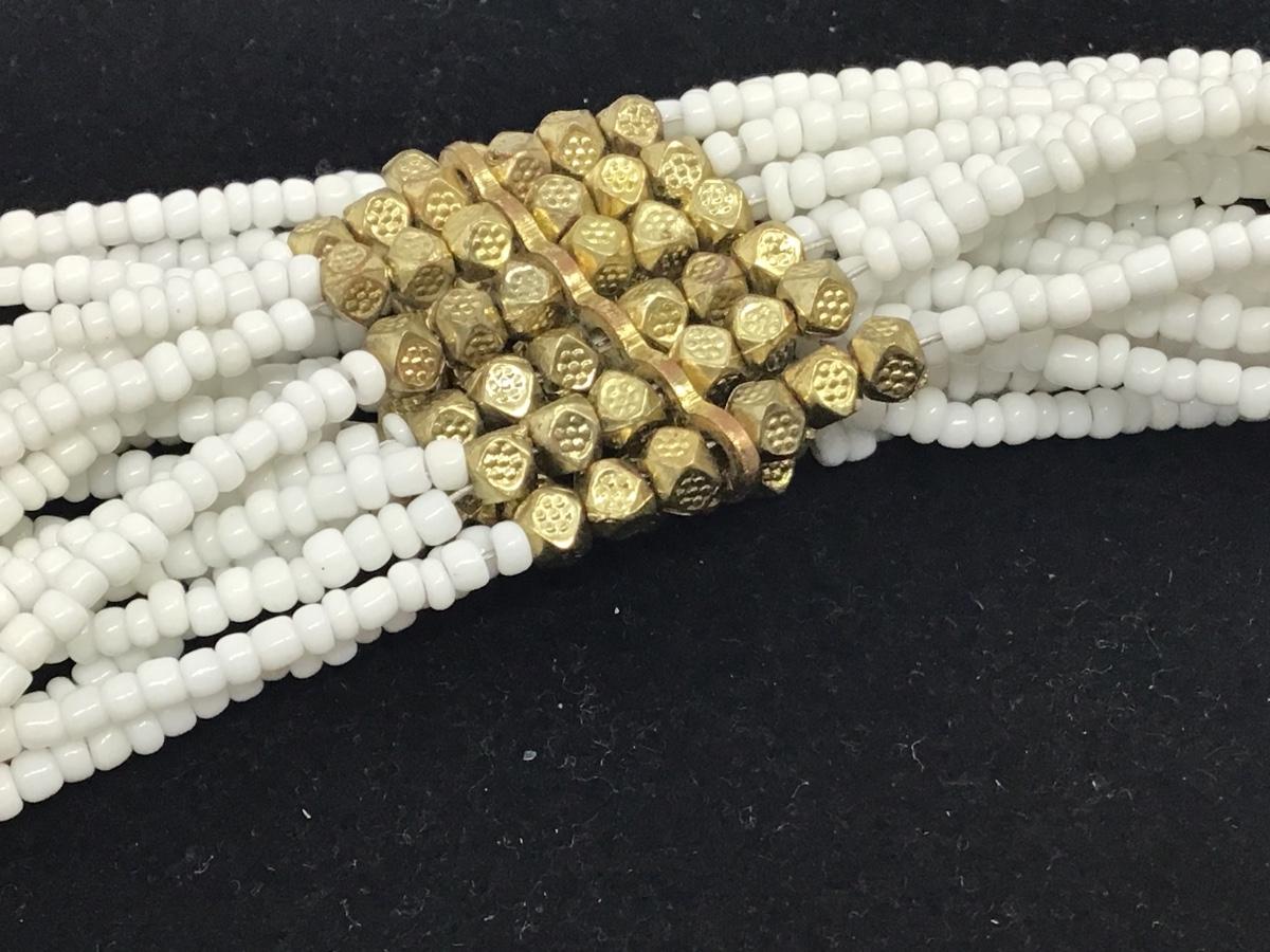 Beautiful White Glass seed bead with Gold Accent throughout. Pretty