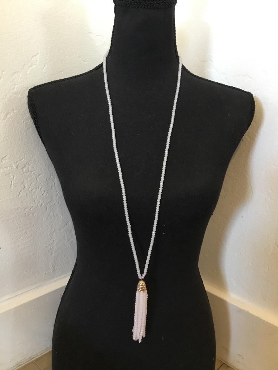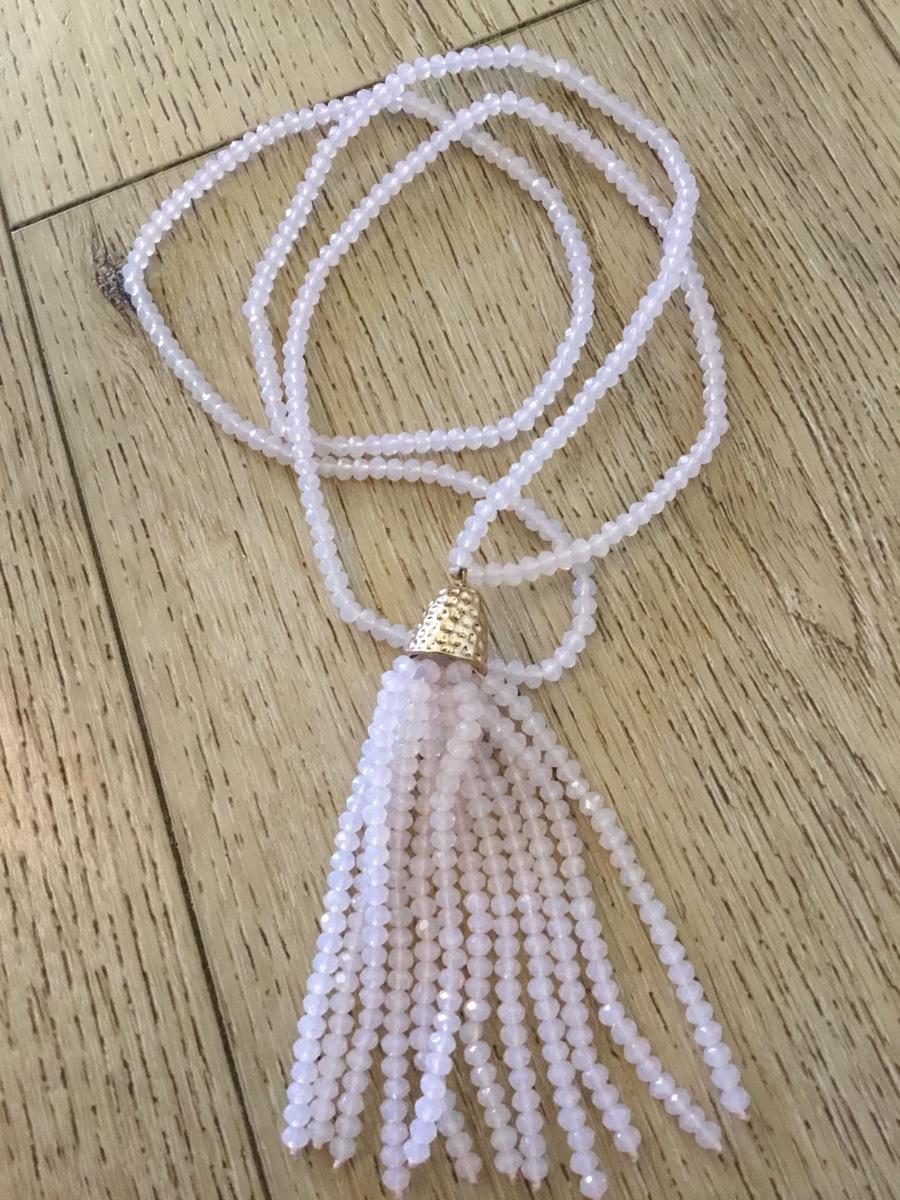 Beautiful white opal essence, crystal or glass bead, tassel necklace