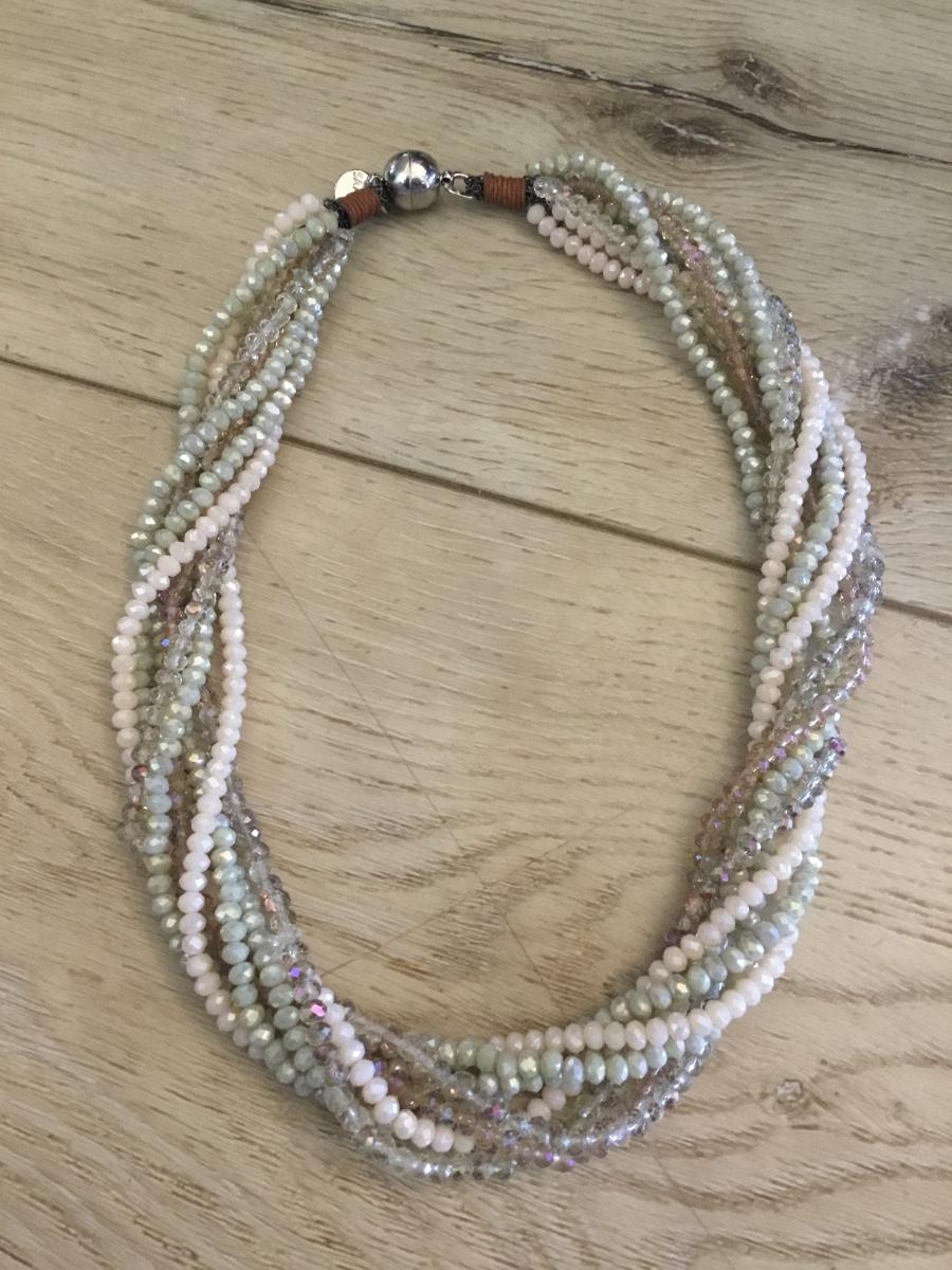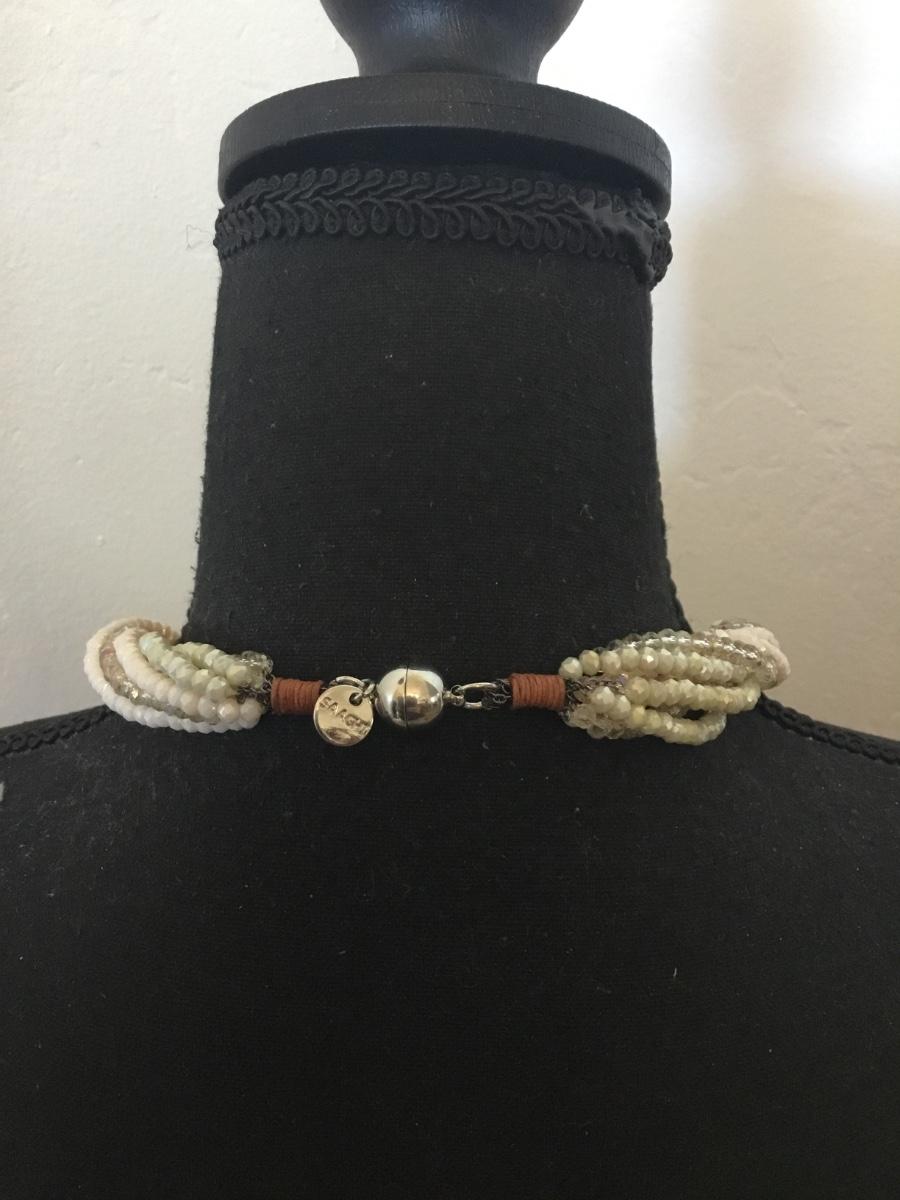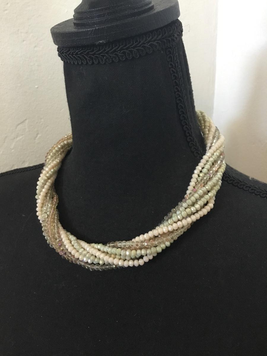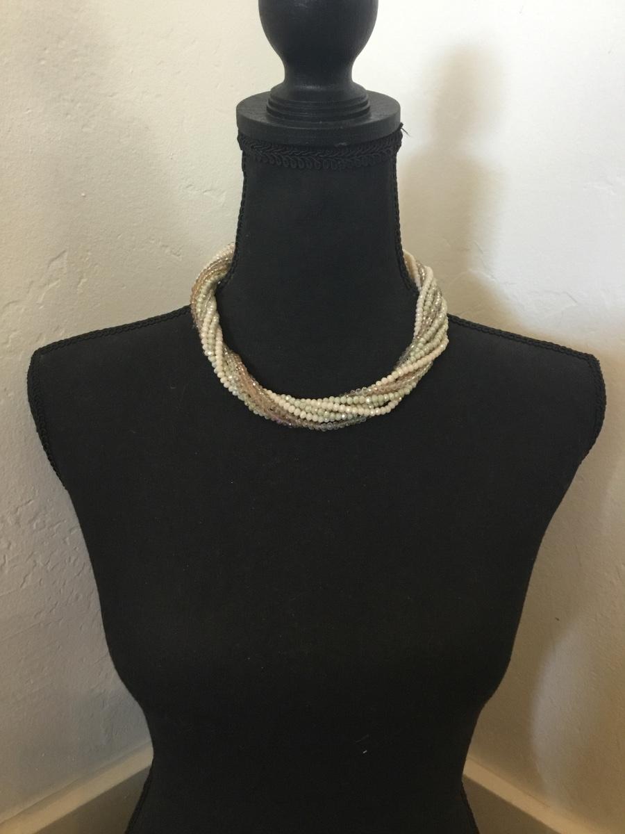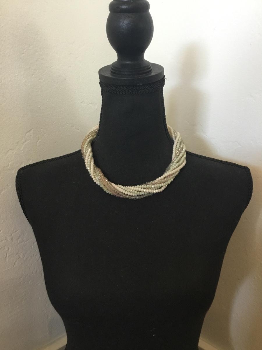 Beautiful, white sage, cream, smoky, crystal, braided, multi strand statement, collar, necklace