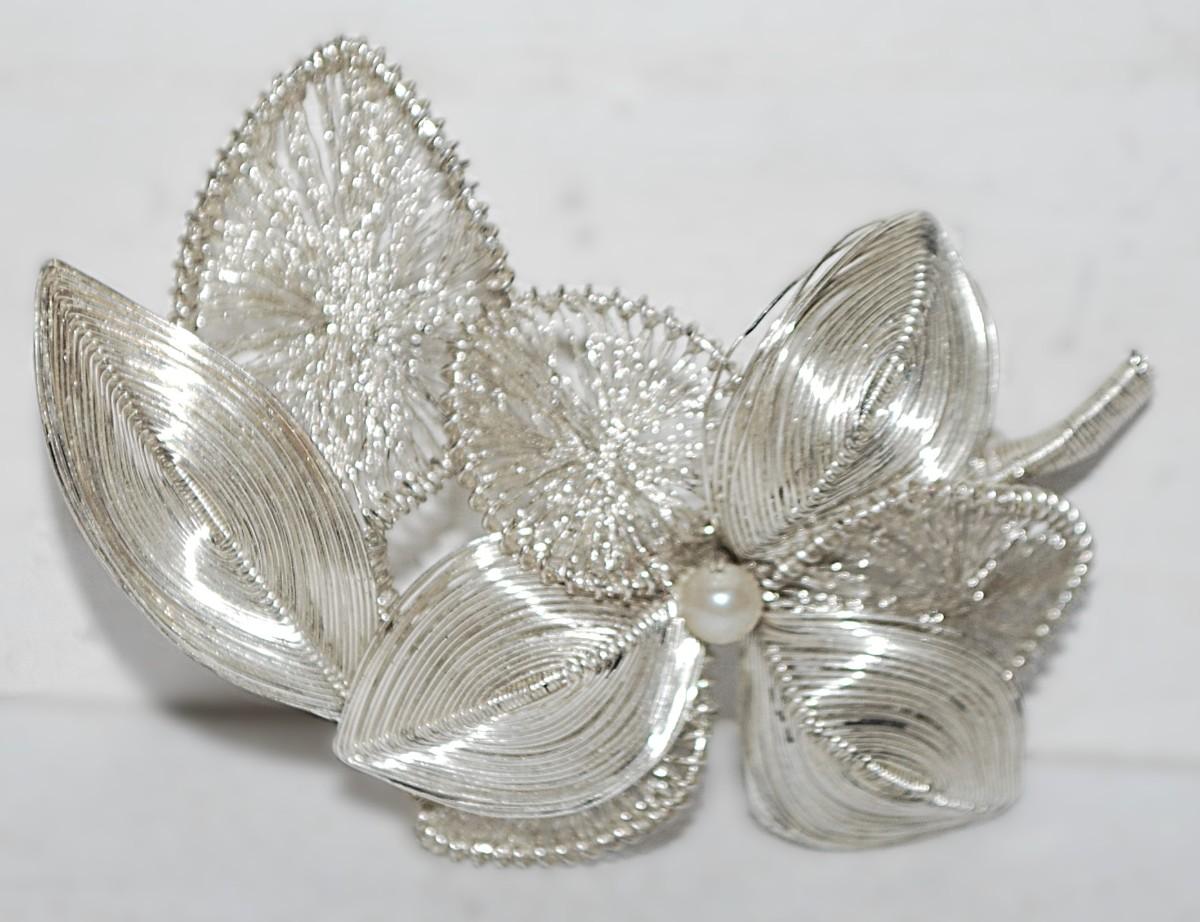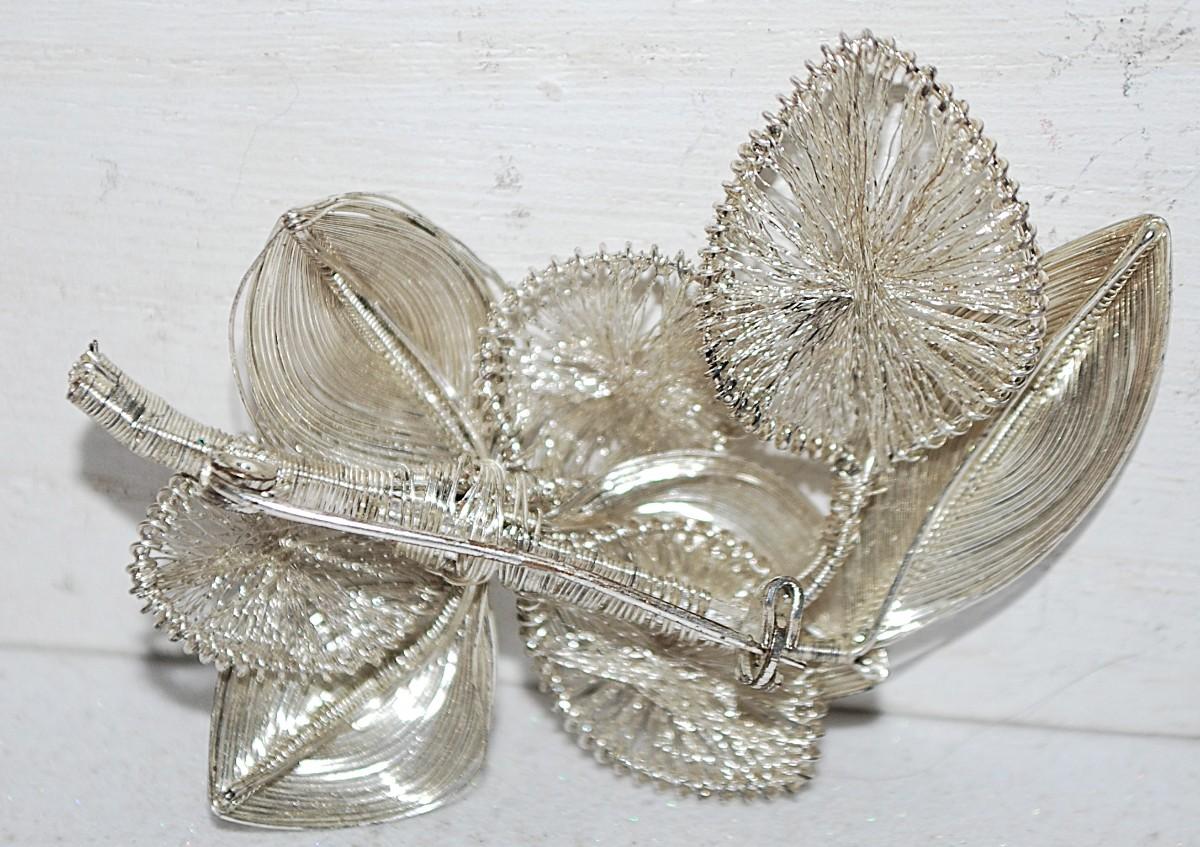 Beautiful WIRE ART Silver Colored Lame' Bouquet BROOCH (2¼" x 1½") on a Silver Tone Setting