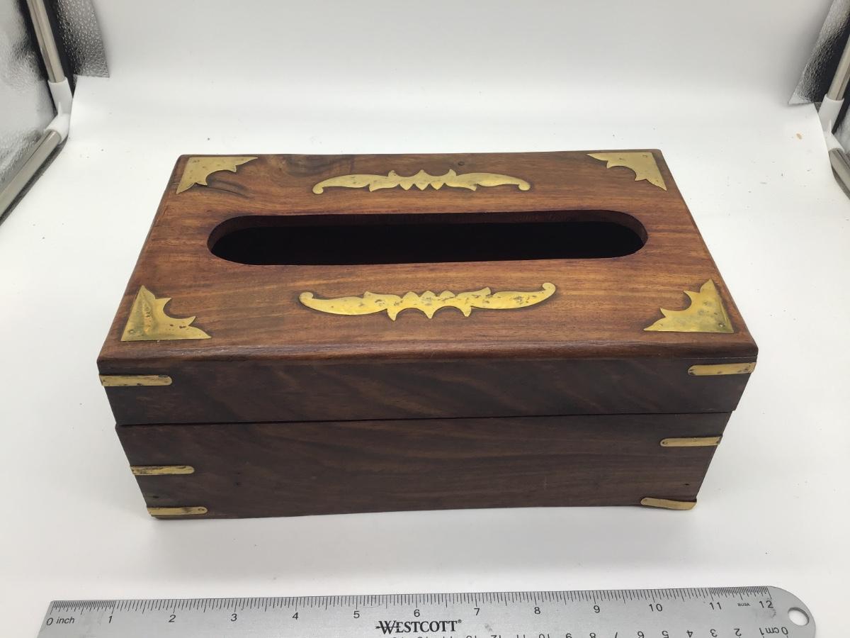Beautiful Wood and Brass Tissue Holder