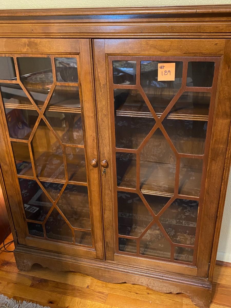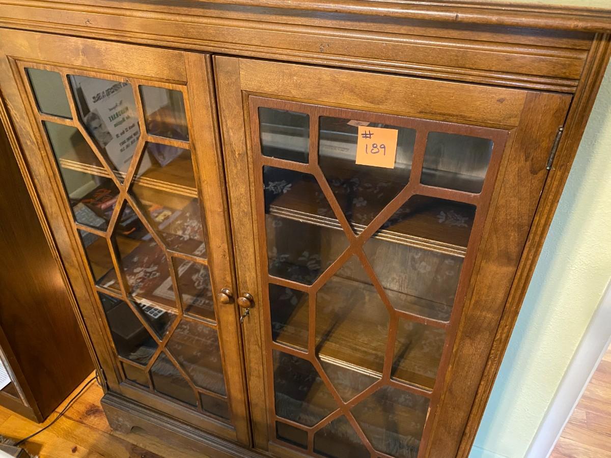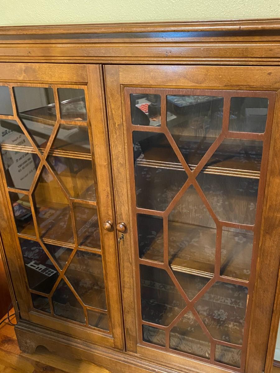 Beautiful Wood Display Cabinet with Glass Overlay Pattern Doors