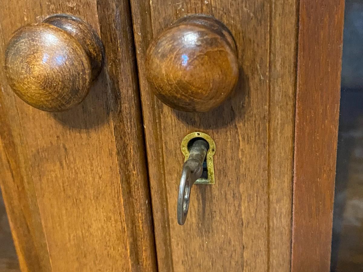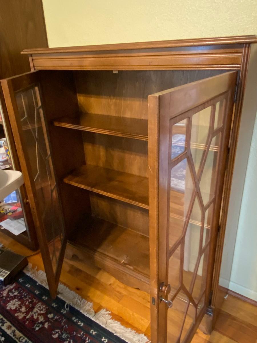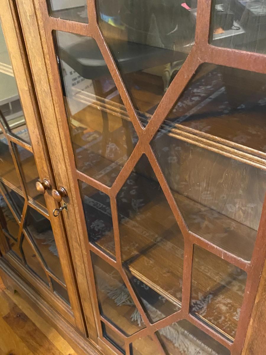 Beautiful Wood Display Cabinet with Glass Overlay Pattern Doors