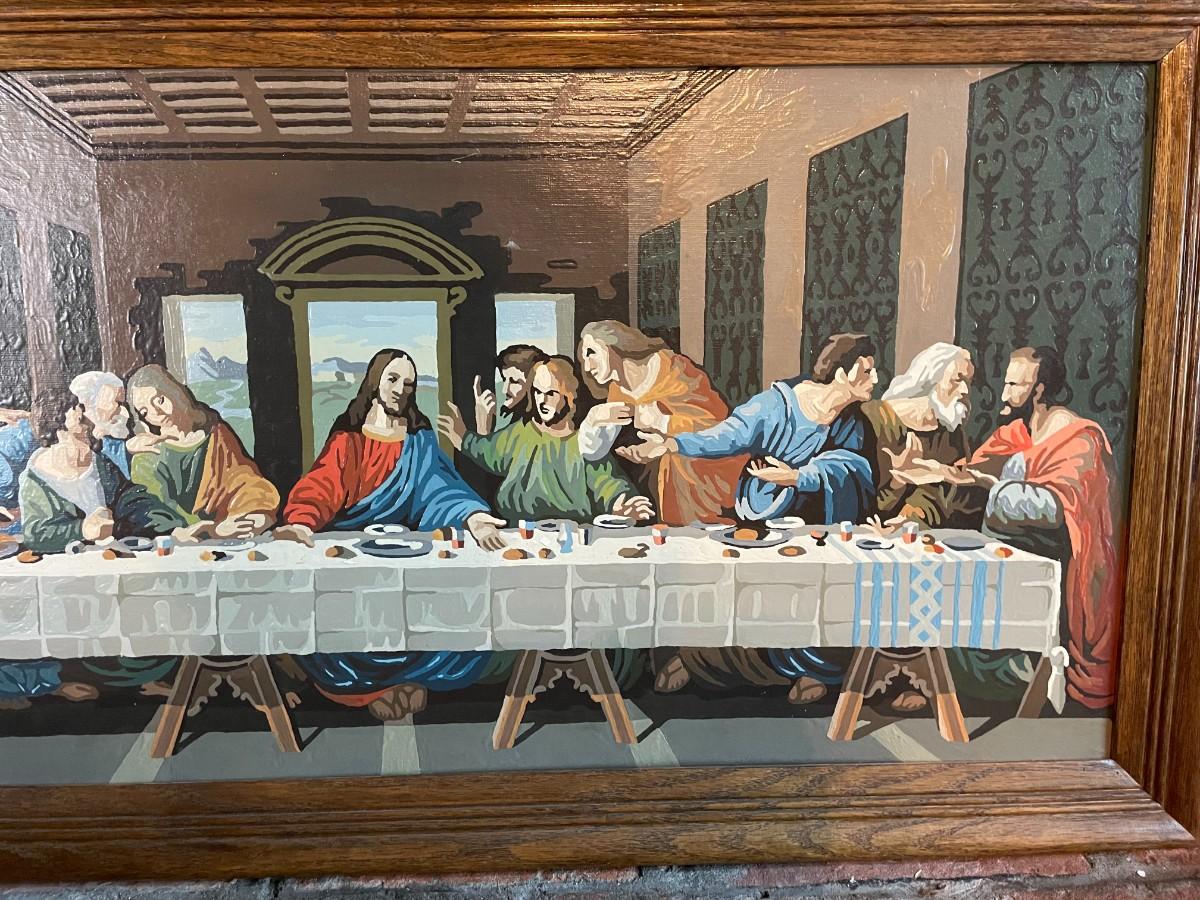 Beautiful Wood Framed “The Last Supper” Picture. 35W x 18H.
