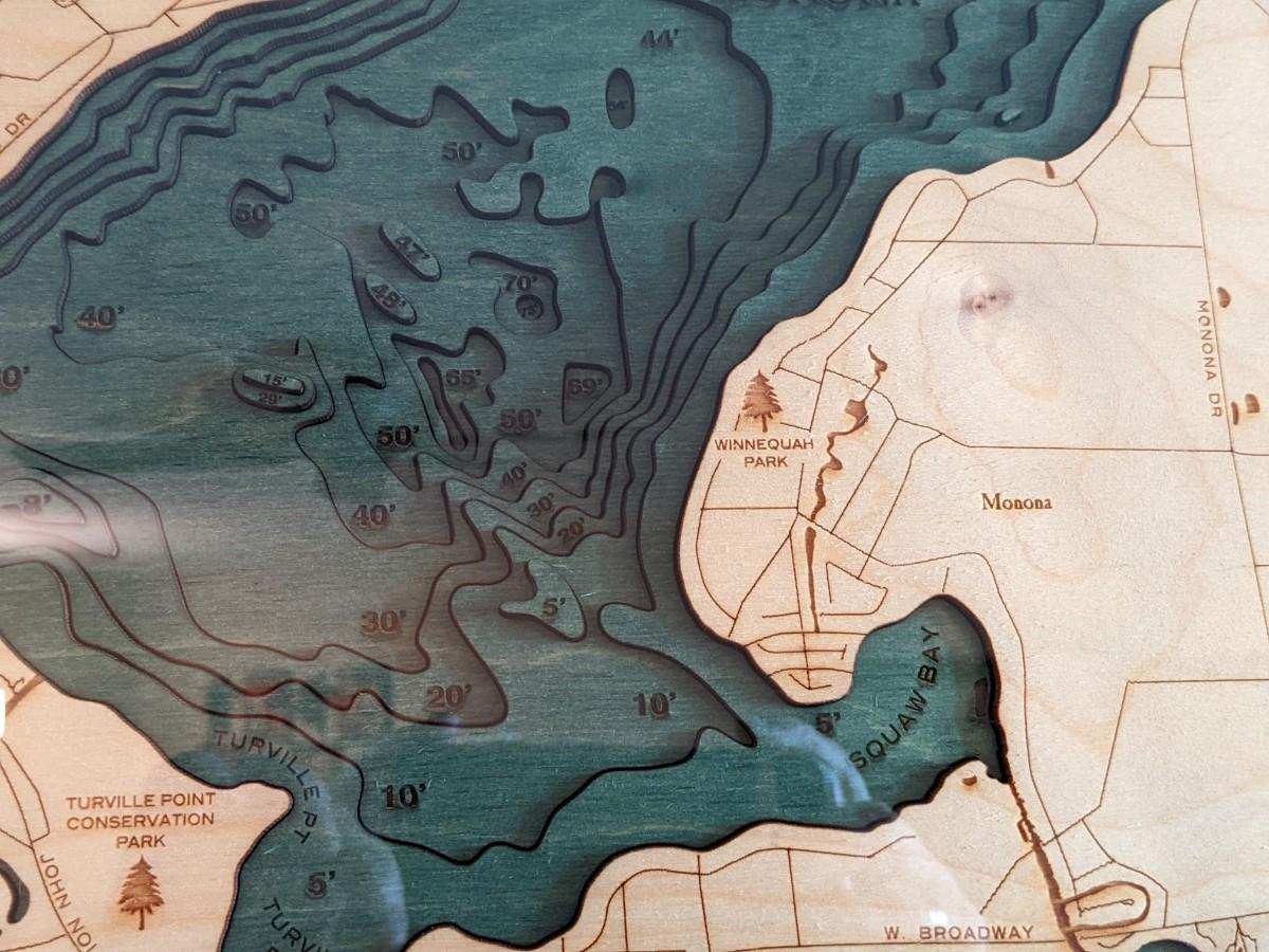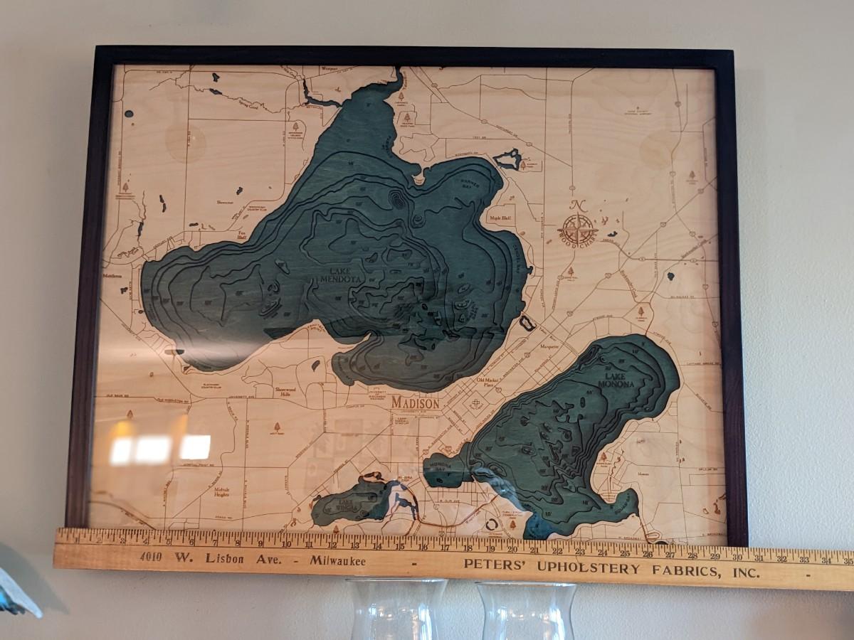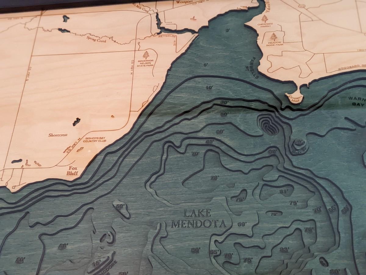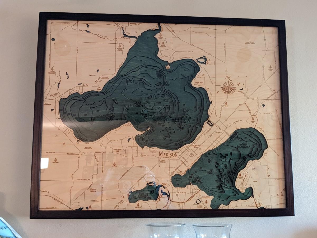 Beautiful Wood Topographical Map of Lake Mendota and Monona