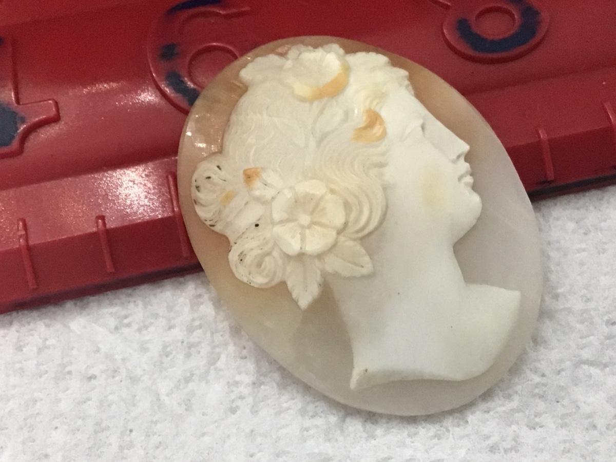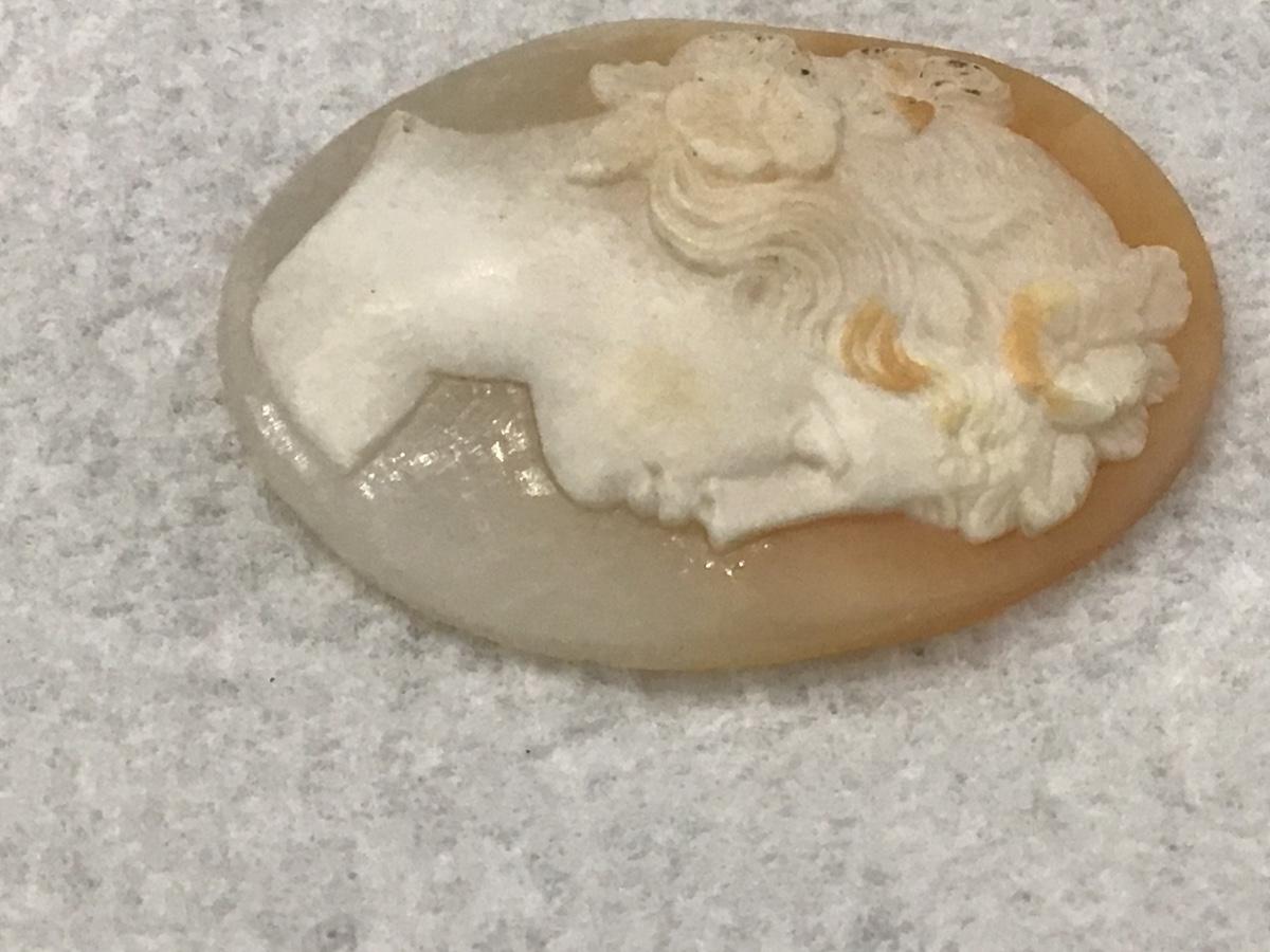 Beautifully carved cameo. Oval scalloped Shell