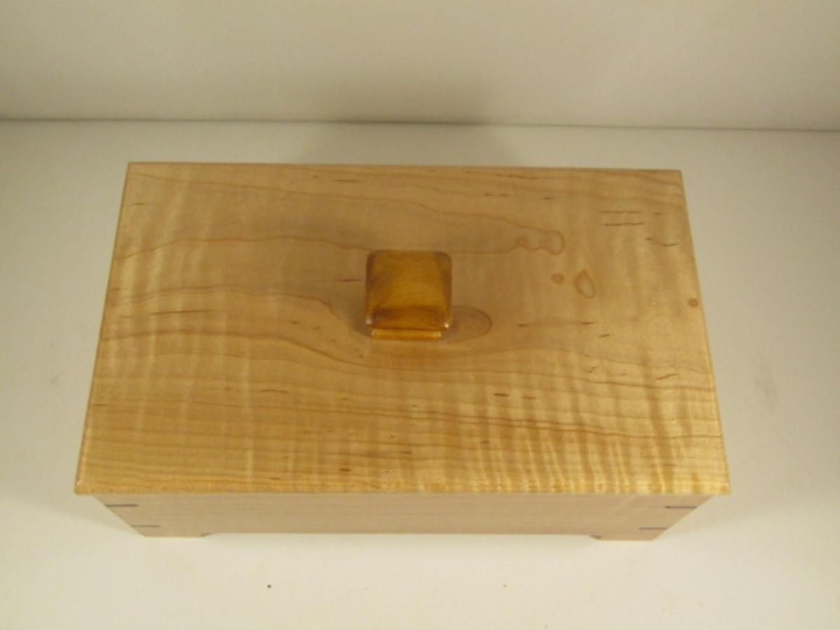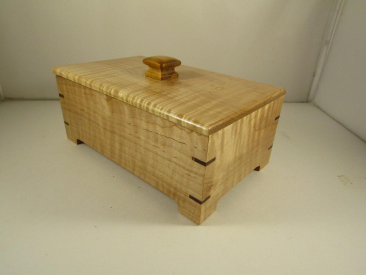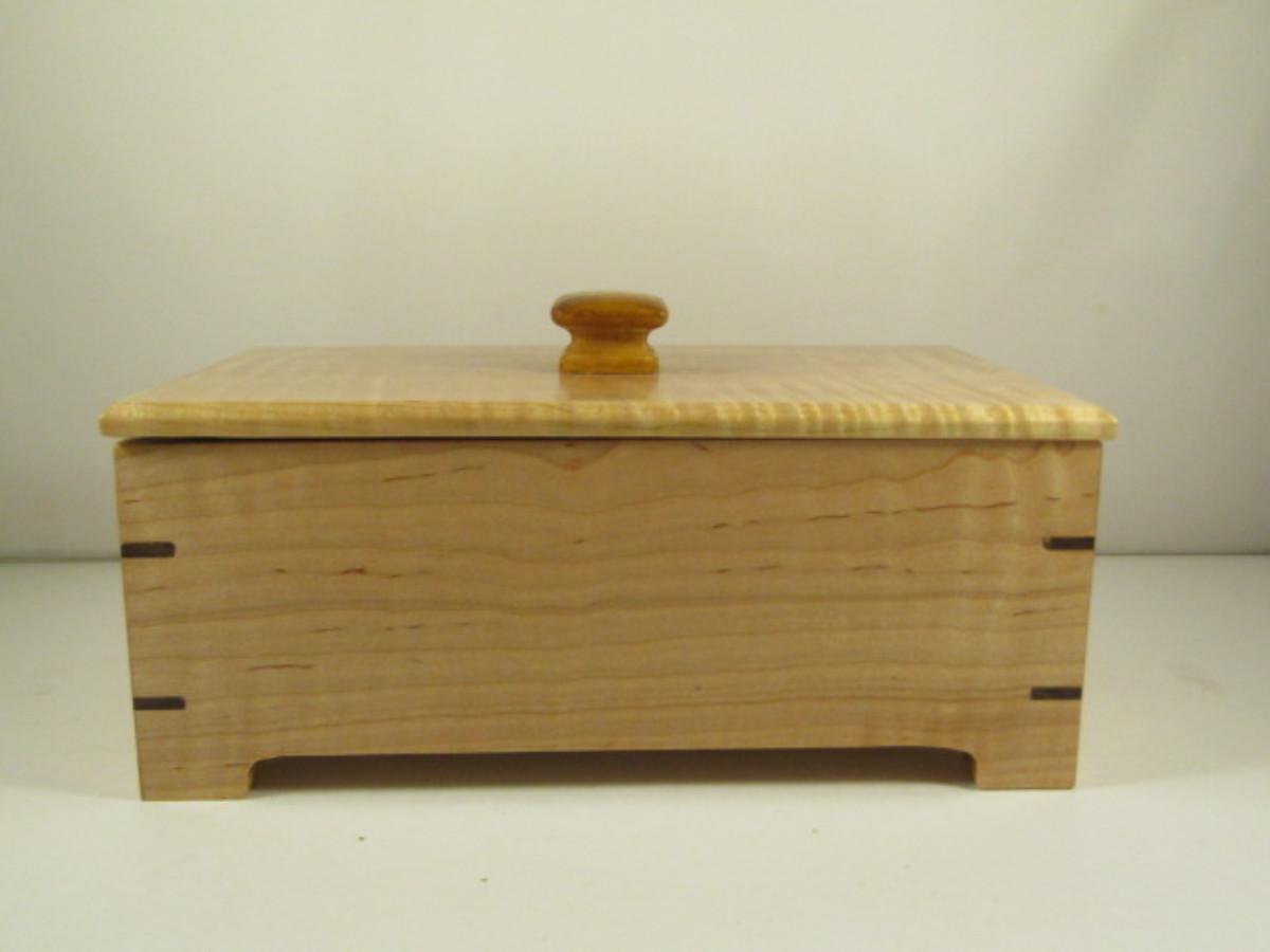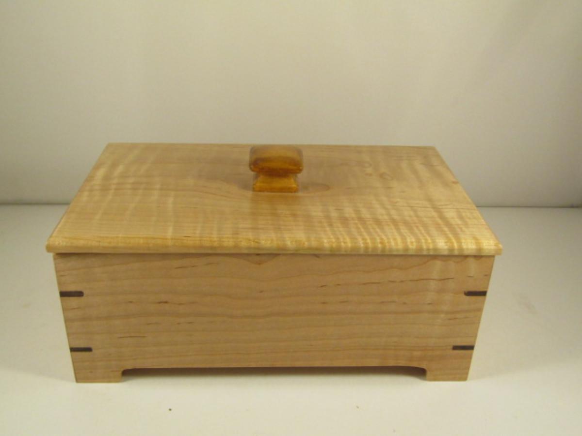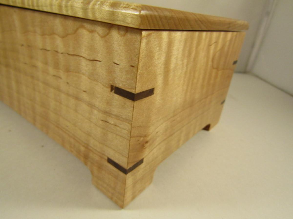 Beautifully Finished Wooden Storage/Jewelry Box with Corner Inlay- Approx 9 1/4" x 5 1/2" x 3 3/4" Tall