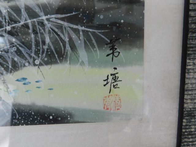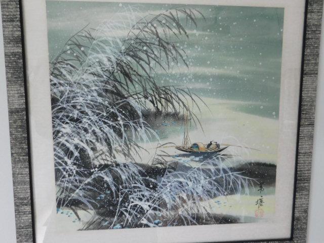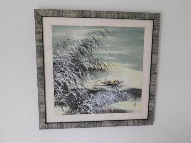 Beautifully Framed Asian Art Winter Pond 18"x17"