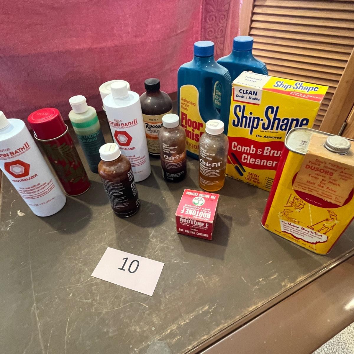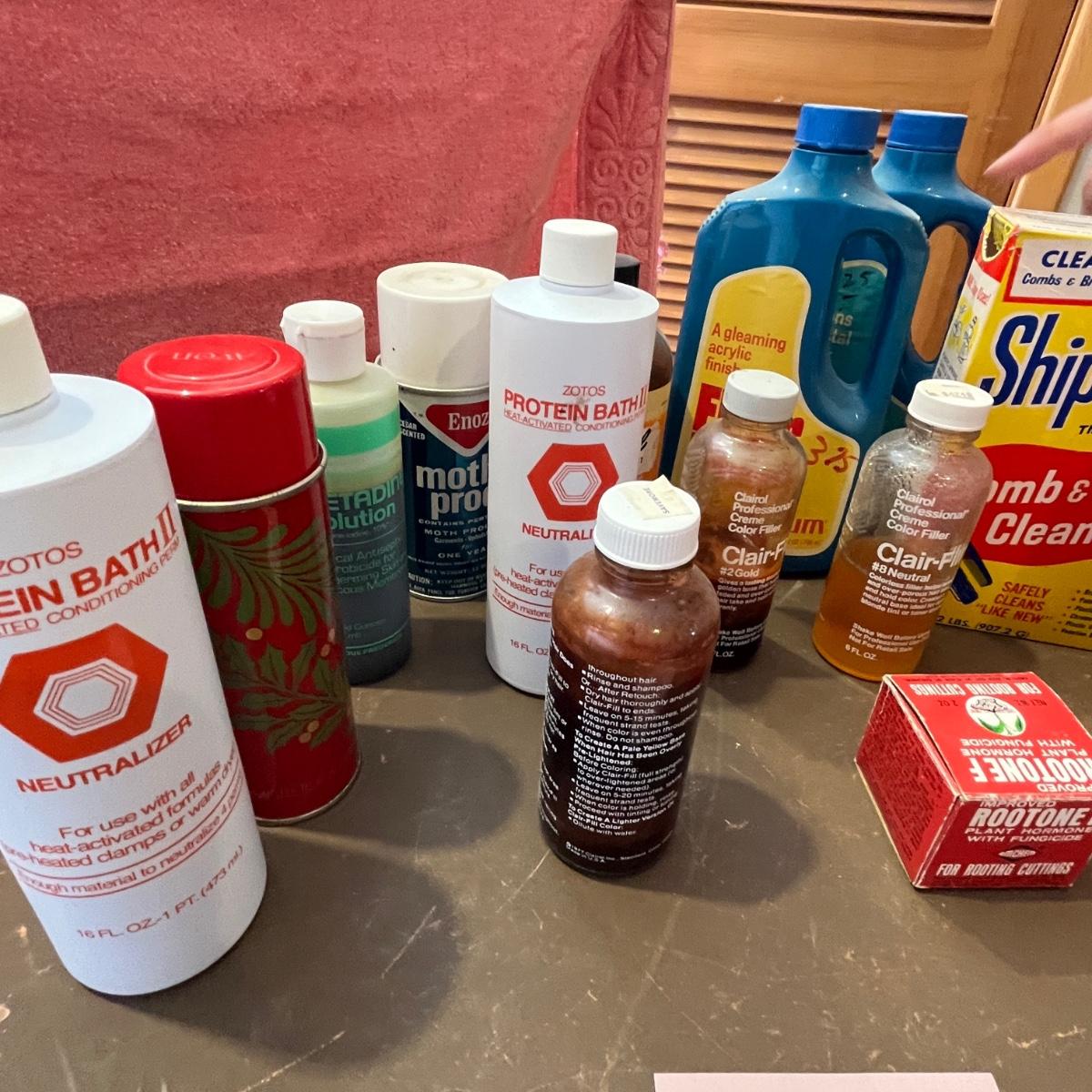 Disrobe, comb /brush cleaner, hair conditioners + more! Great for laundry room display.