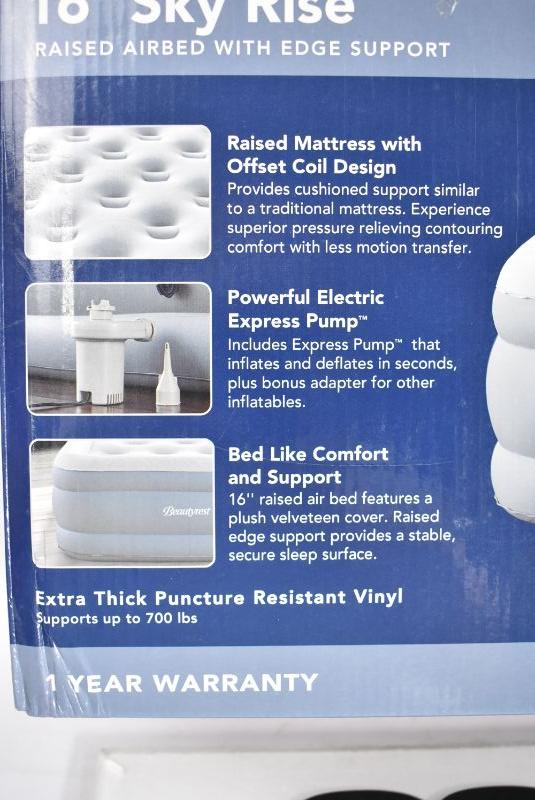 Beautyrest Raised Airbed. Full Size, 16" Sealed Box, $63 Retail - New