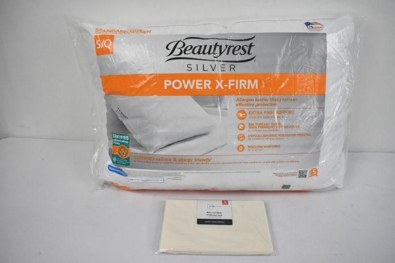 Beautyrest Silver Power X-Firm Asthma & Allergy Pillow & Cream Pillowcase - New