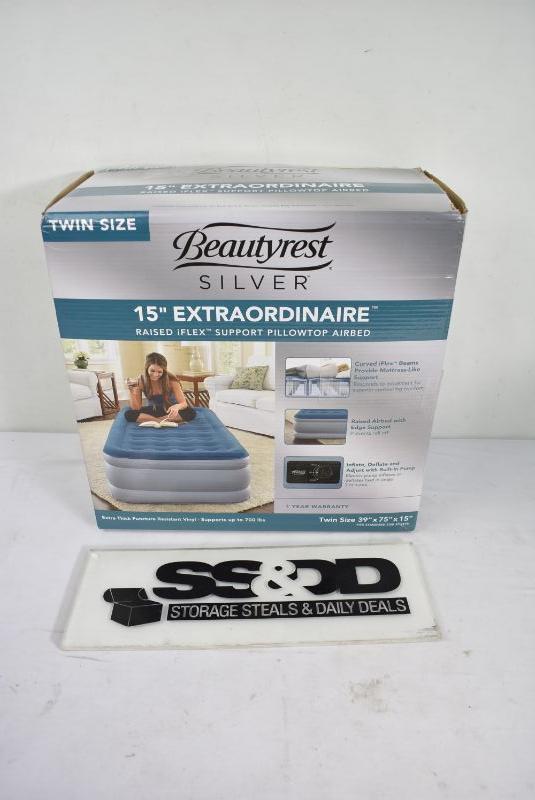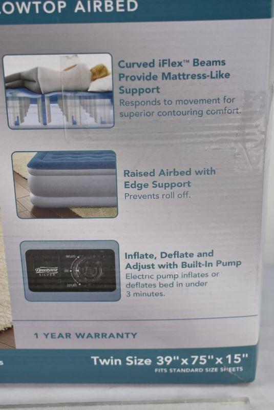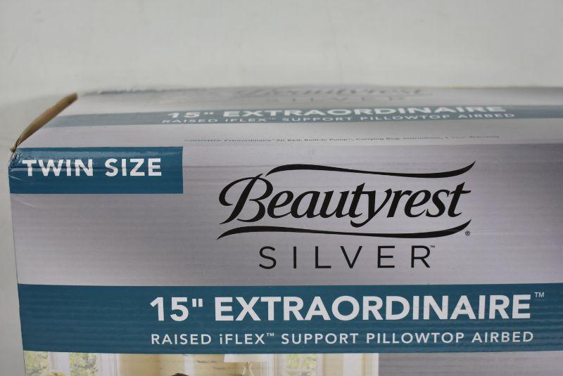 Beautyrest Silver Twin Airbed, 15" Extraordinaire, w/ Pump, $79 Retail - New