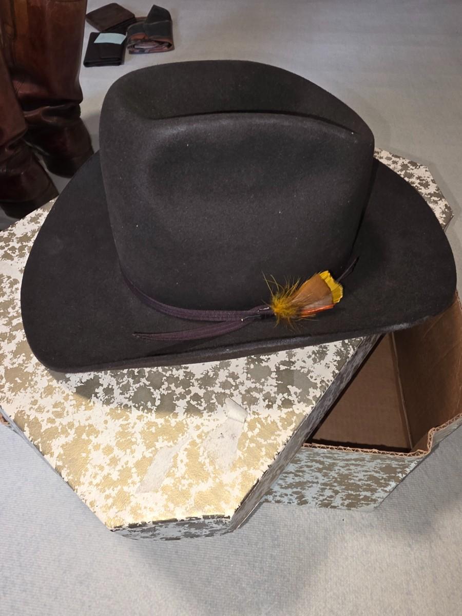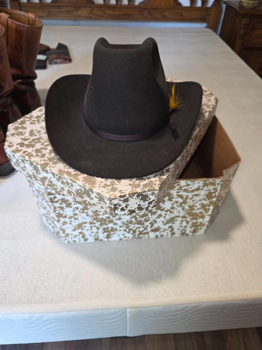 Ten x quality. With hat box. Very dark brown color.