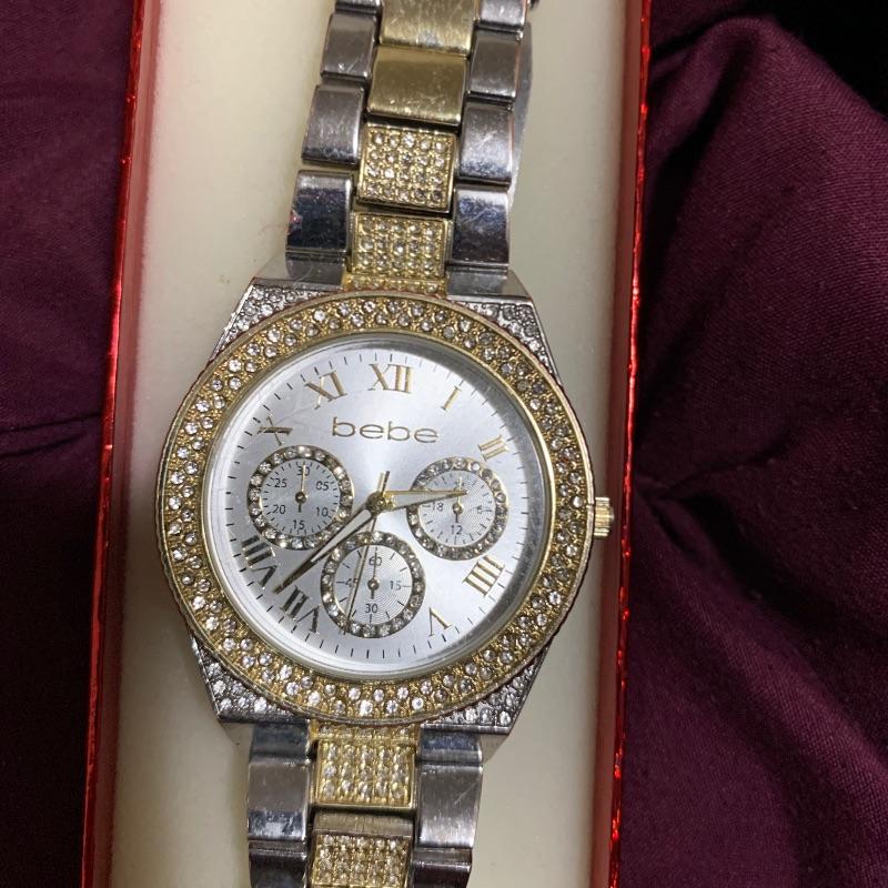 BeBe large two tone Rhinestone Watch, runs in great condition