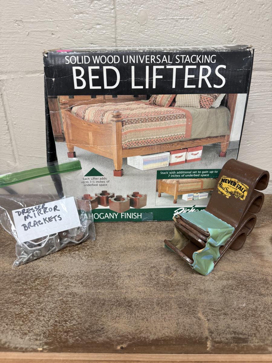 Bed risers, antique wrought iron bed spring mattress brackets, dresser mirror brackets