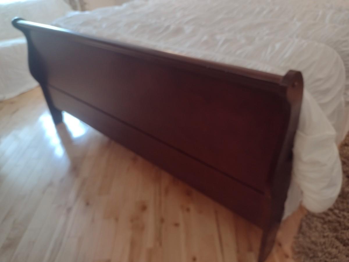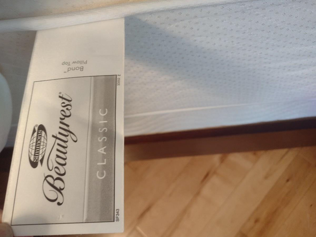 Sleigh Style Bed with Beautyrest Mattress. Item is upstairs. Please bring tools and assistance, if needed, for safe removal.