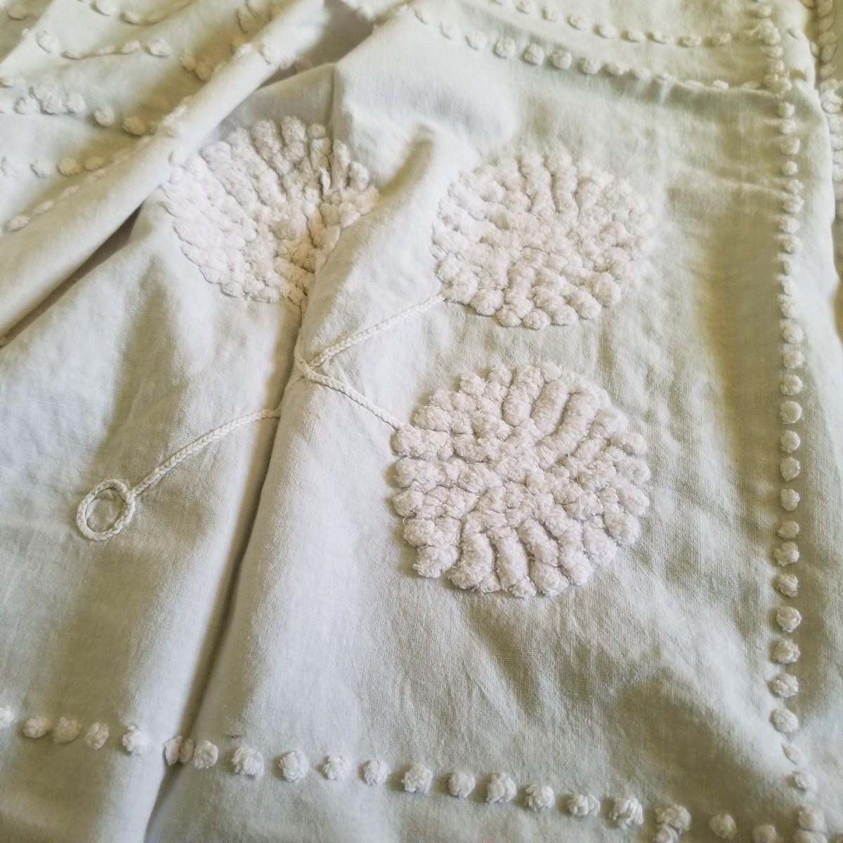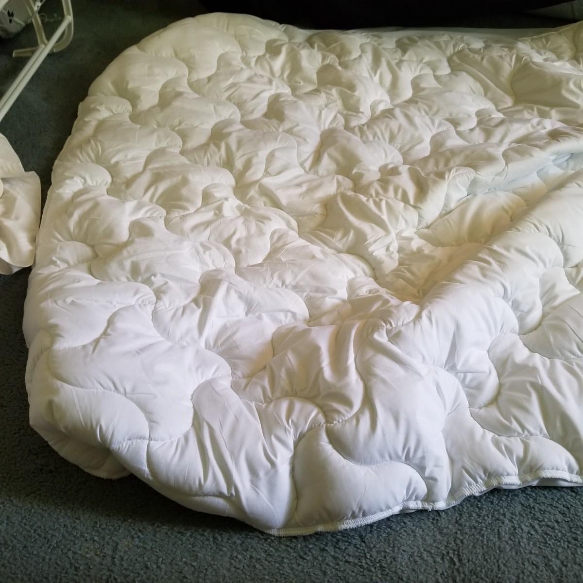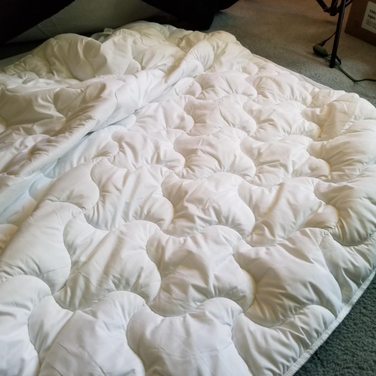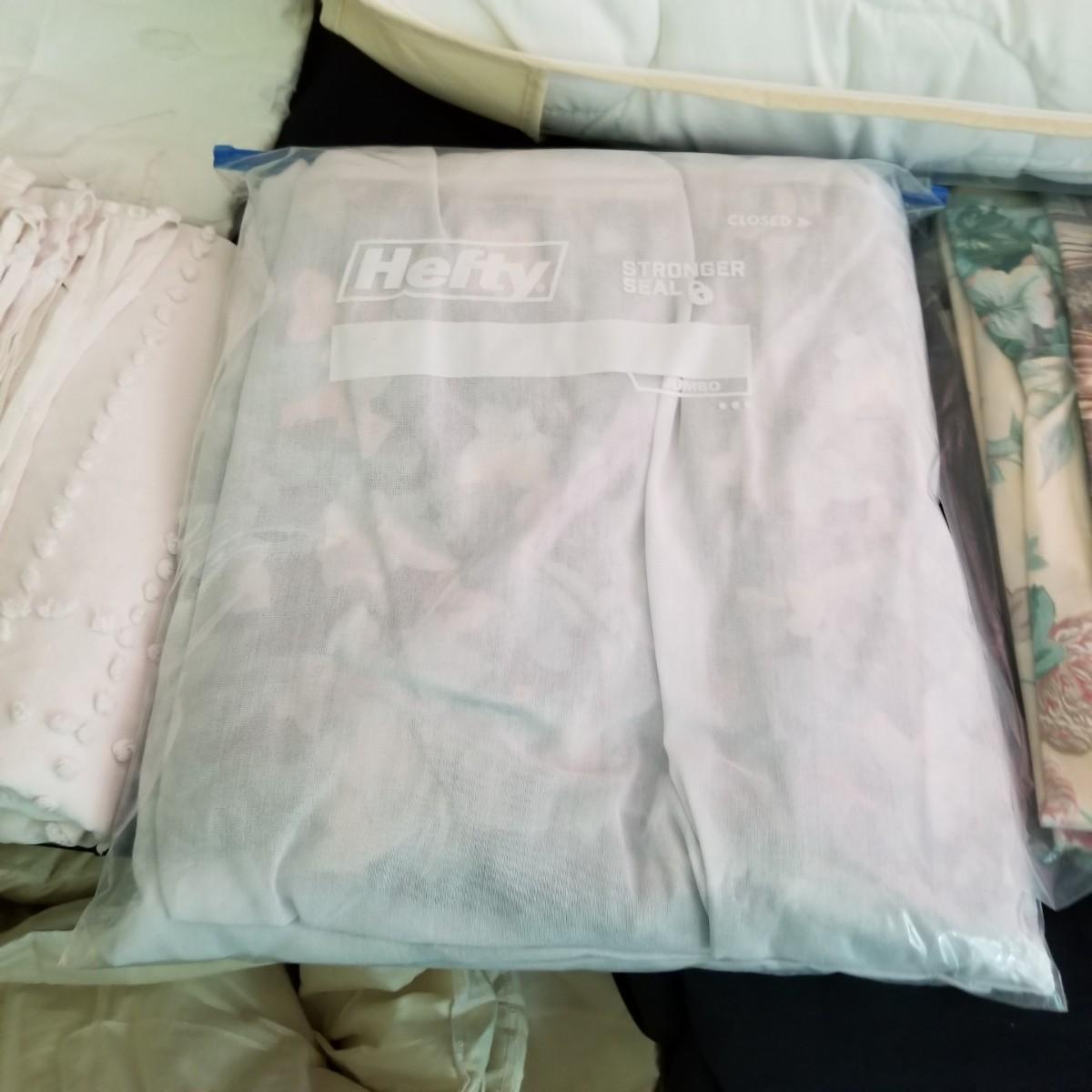 Sheets, comforters, spreads, dust ruffles. Two queen Comfort Ewe wool covers, 80"x84". Chenille bedspread 72"x76". Blue cover throw 68" x84". Shower curtain liner + curtain rings. One white queen size cover for bed. See photos for details. Local pickup only.